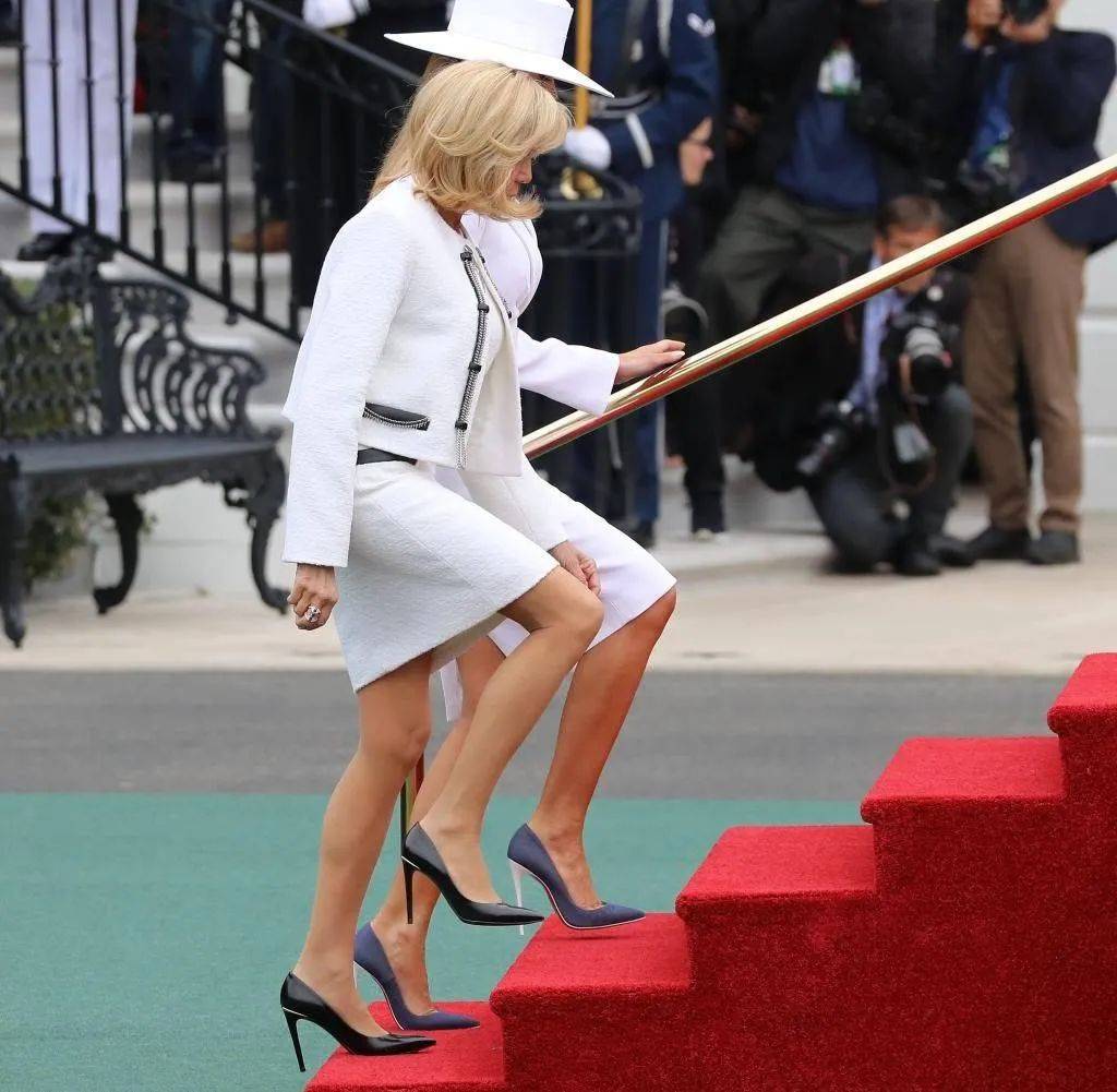 连一向挑剔的“老佛爷”卡尔·拉格斐都对小丽赞不绝口,称她有着“全巴黎最美的腿”。和模特出身的梅拉尼娅同框,布丽吉特的小腿线条甚至还更胜一筹。