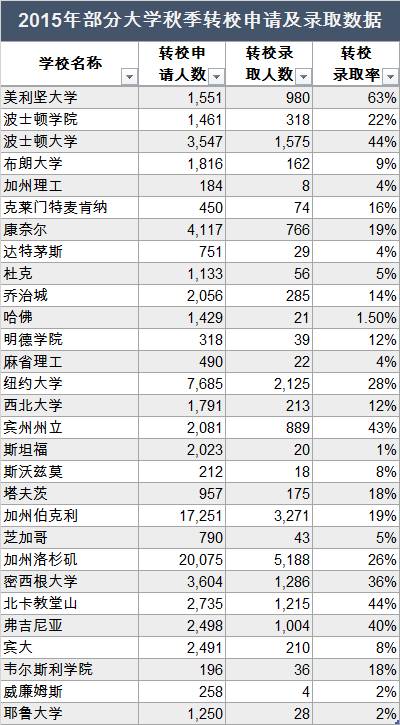 请注意,转校至一流大学的竞争同□非常激烈,以下是ToptierAdmission统计的本科转校录取率,供有意转校的学生和家庭参考。