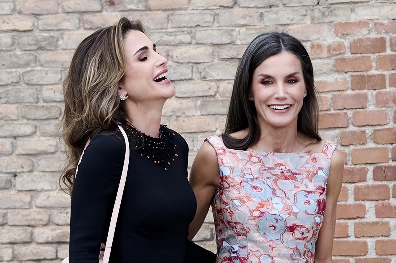 西班牙王后莱蒂齐亚和约旦王后拉尼娅,是在欧洲当今皇室中最迷人的两位,所以,在时尚穿搭上,也不会输给英国凯特王妃,很自然地,当她们一起出席活动,一起同个框时,看起来非常时尚与颇具魅力。