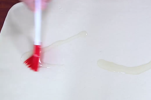 在面饼上依次刷上食用油、撒上食盐、辣椒面(不喜欢吃辣的朋友可以不加辣椒)、小葱花,然后将两边的面饼往中间折1/3,在翻折的那一面也要刷上食用油。
