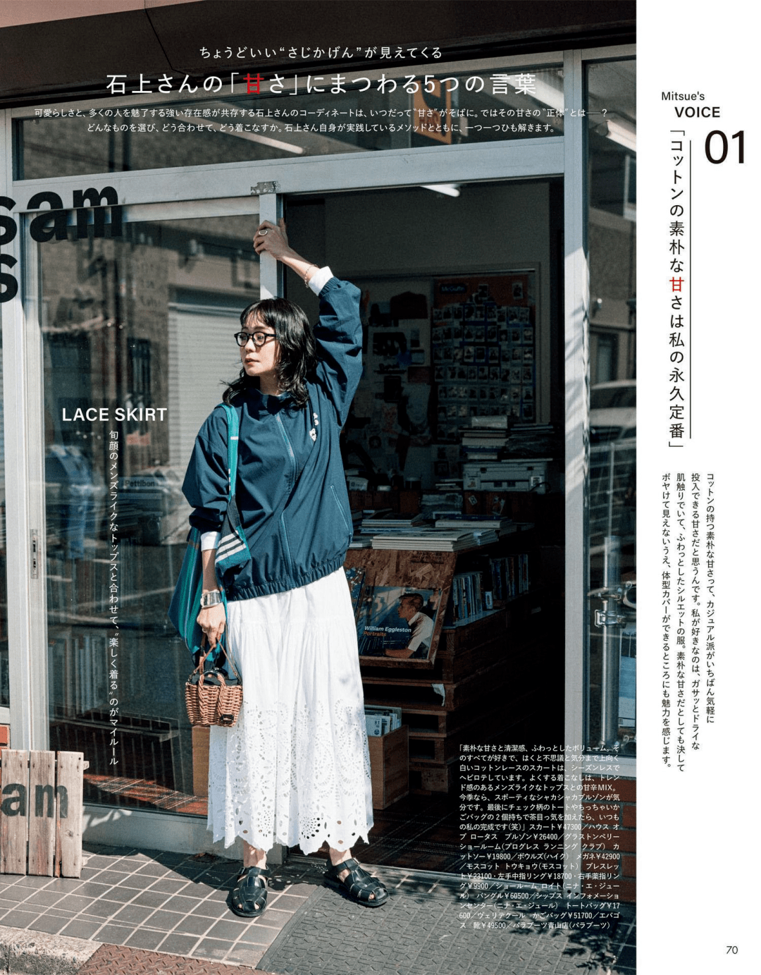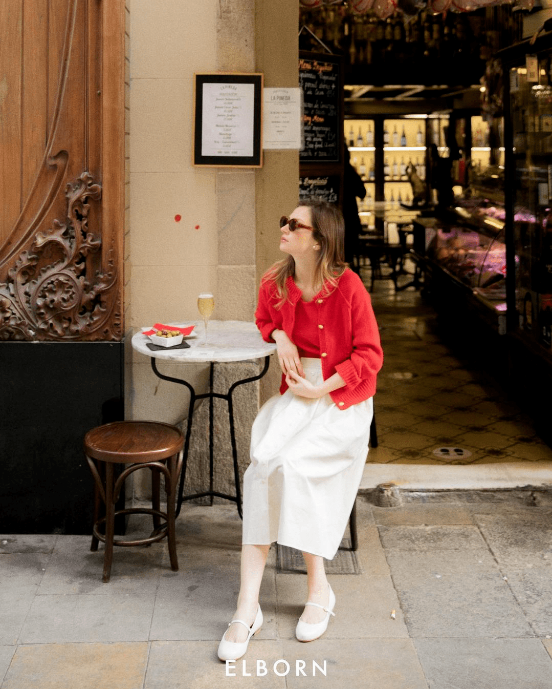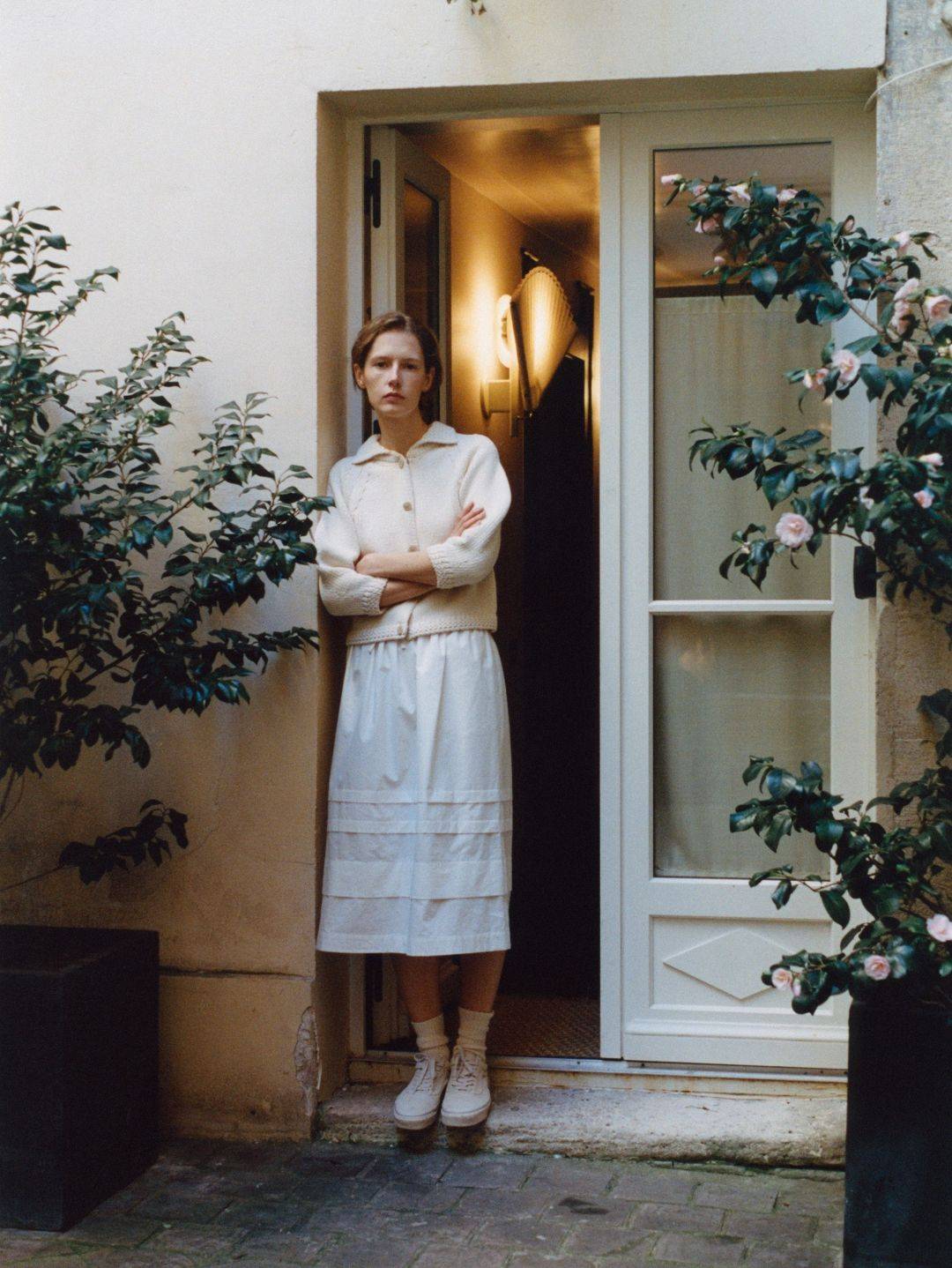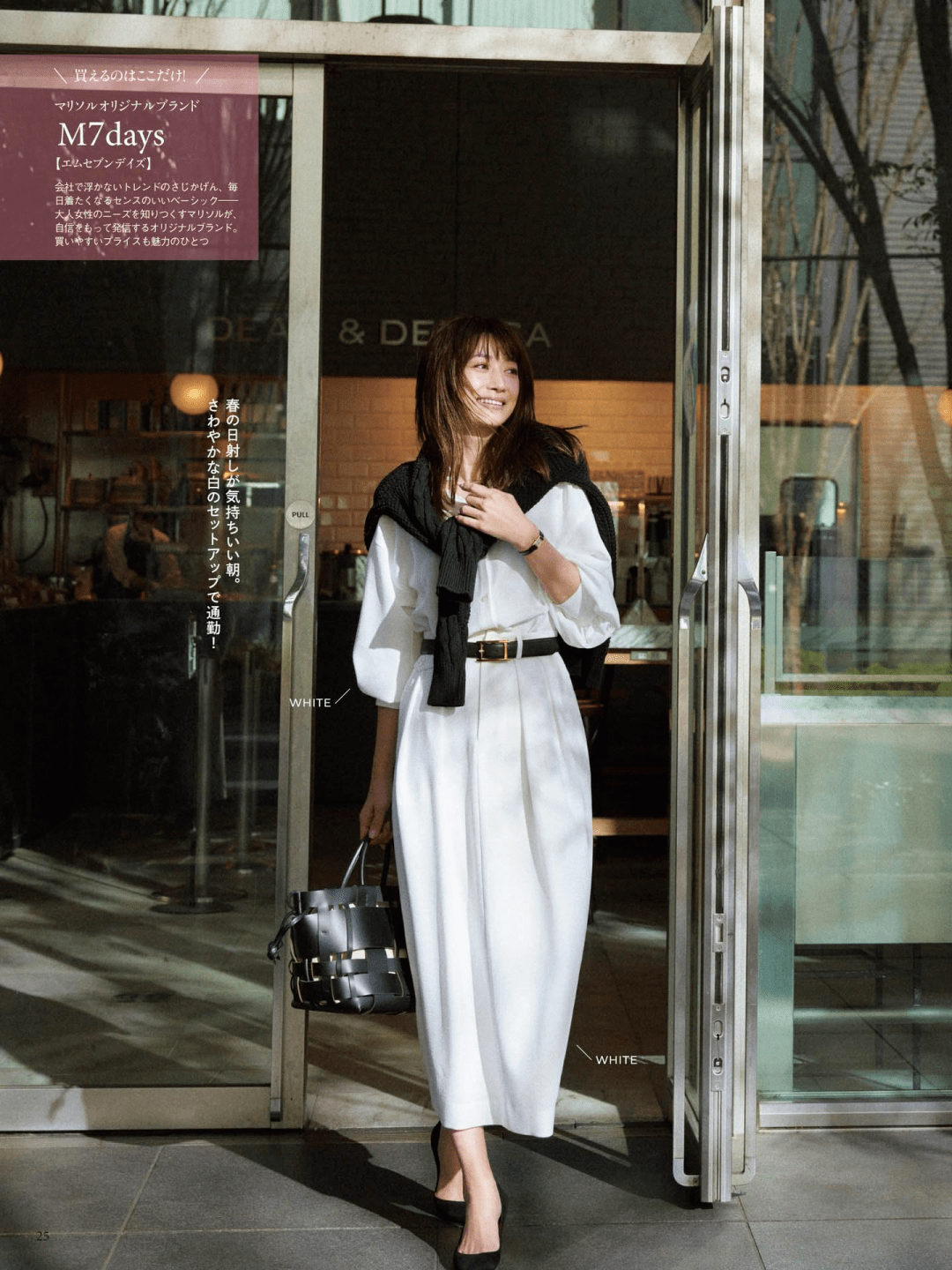 虽然比伞裙日常,但今年流行的小白裙裙摆还是偏大的,整体可以遵循“上紧下松”的原则,选一件修身的针织衫。