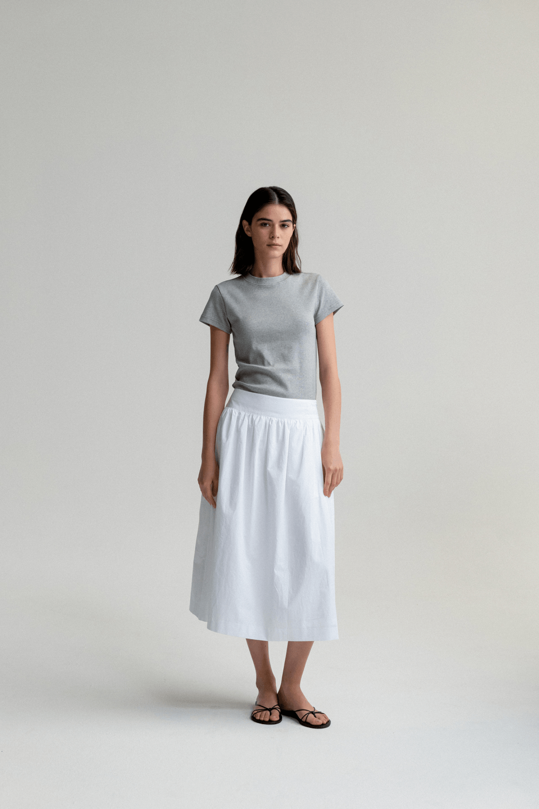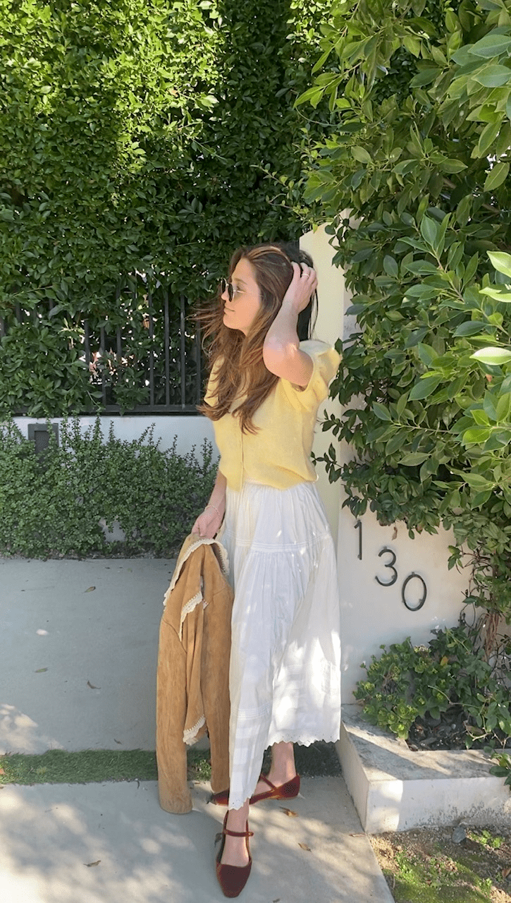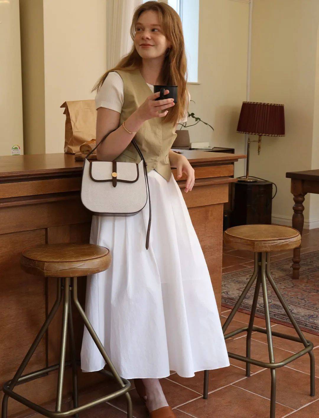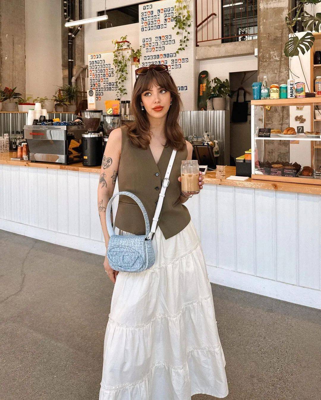 虽然说这种白色半裙的优势就在于怎么搭都行,但你有没有觉得,基础款的背心搭它,不出错,却也不出彩?