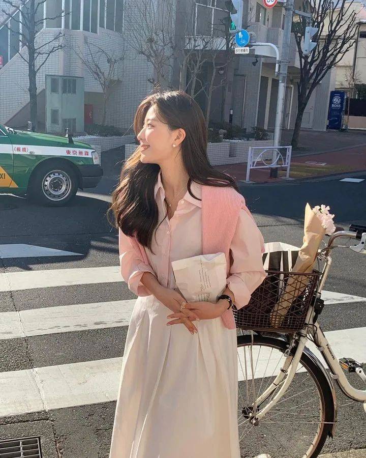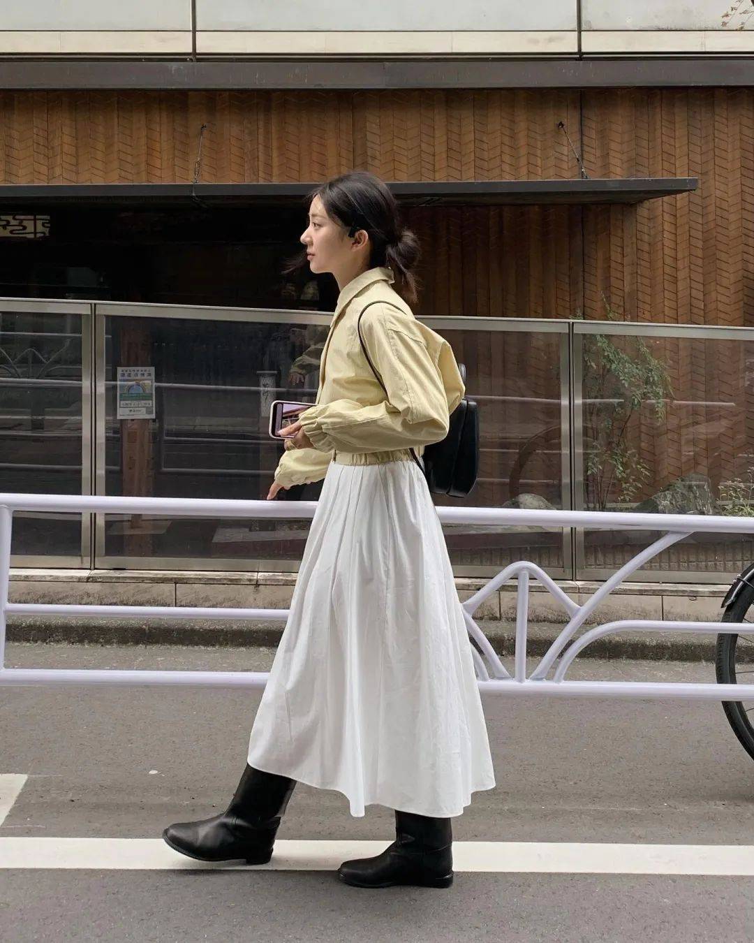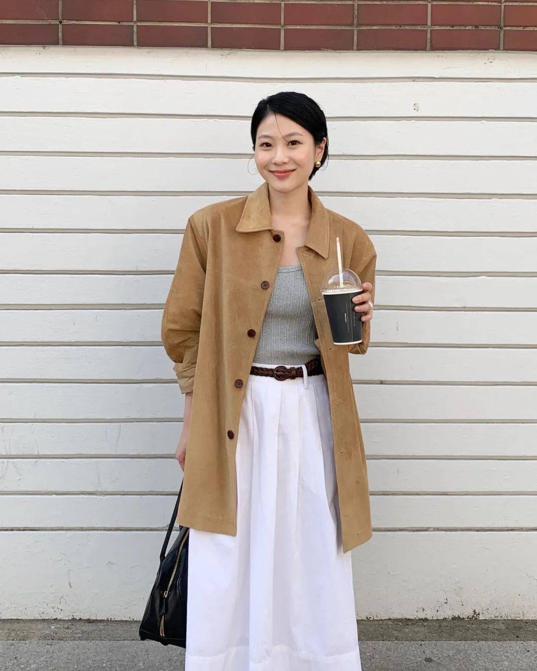 如果你的公司对着装要求不是特别严格,小白裙+衬衫,就是一套轻通勤上班装。
