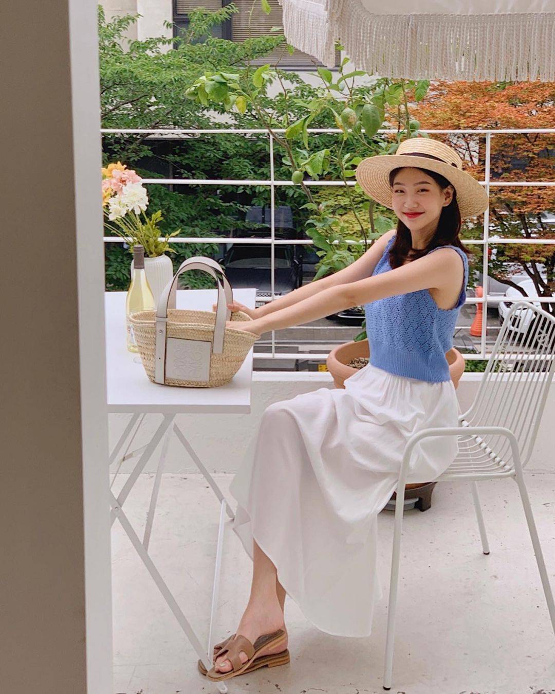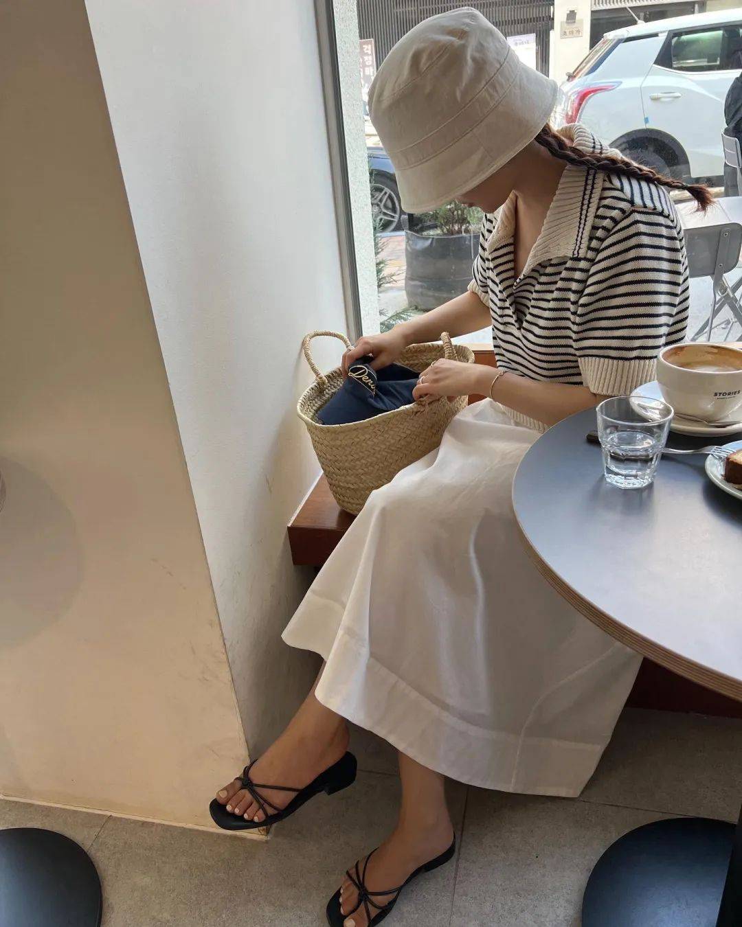 不过这类背心有一定的厚度,比较适合身材扁平一些的女生。草帽和草编包,也都是出片神器。