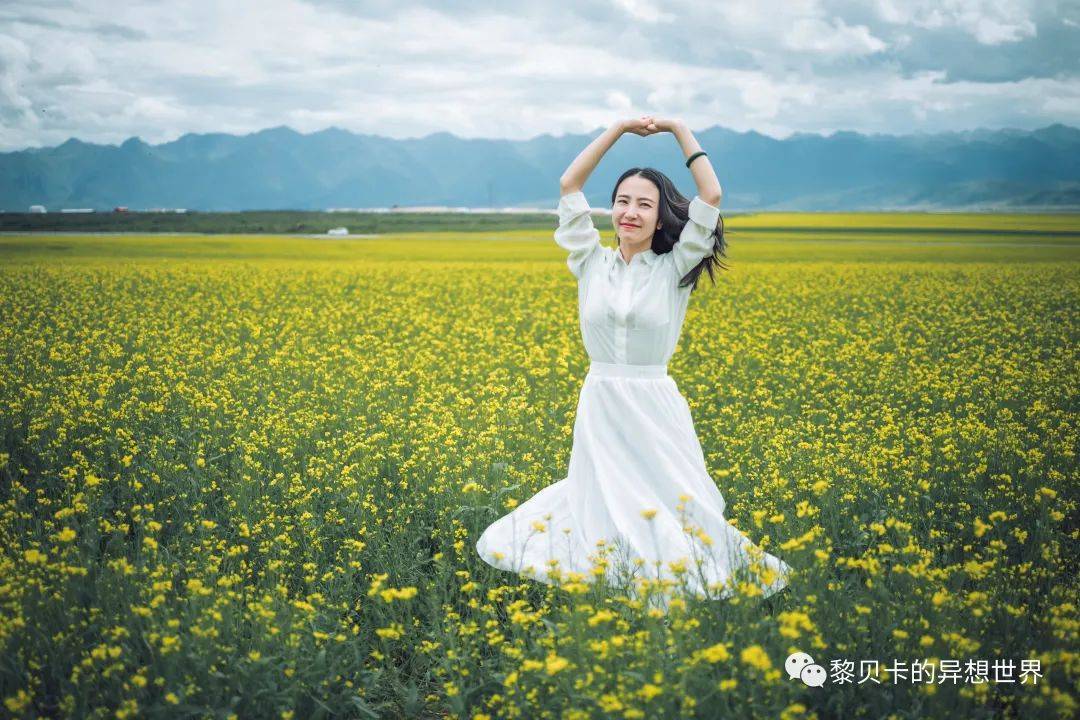 啾啾:卡卡,好久没有投稿了,我也来投稿最满意的一张旅游穿搭照。青海油菜花田,步行时穿的T +牛仔裤,拍之前套上的一身白,“室友”让我转圈圈他抓拍,现在回想当时的情景真是美好。