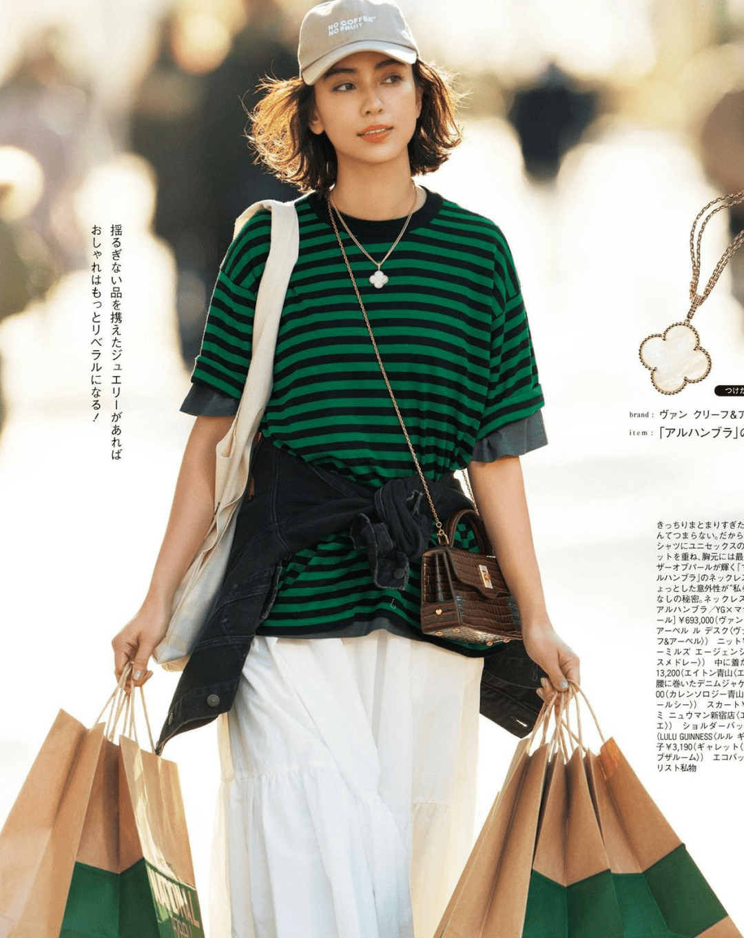 这种男友风条纹T也可以尝试,建议要手动掐出腰线。