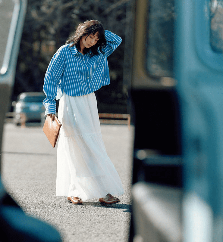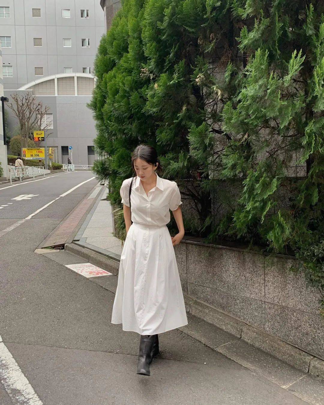 衬衫 记得选设计简洁一些的款式,长裙配浅口单鞋更清爽。