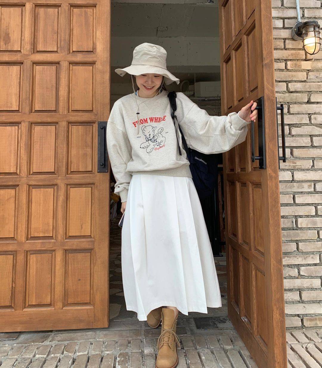 卫衣搭小白裙,也是这两年很流行的搭配方式,看起来很舒服。