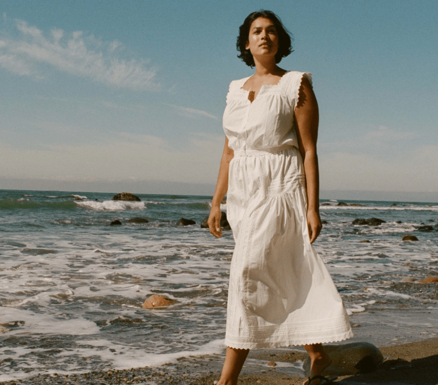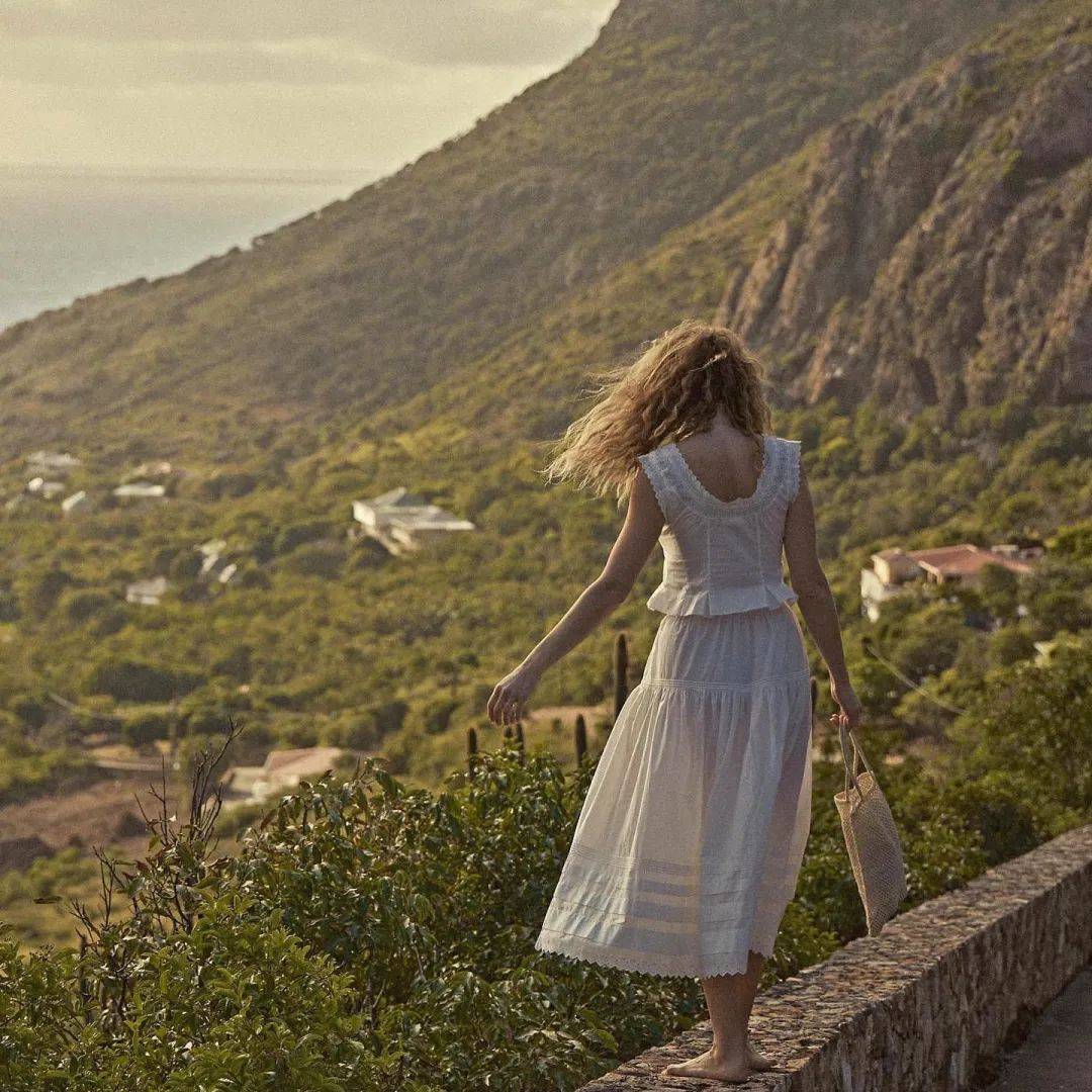 下图 这一整套都来自美国品牌Doen,他家很喜欢走这种复古乡村风,穿去海边或者山野里拍照绝了。