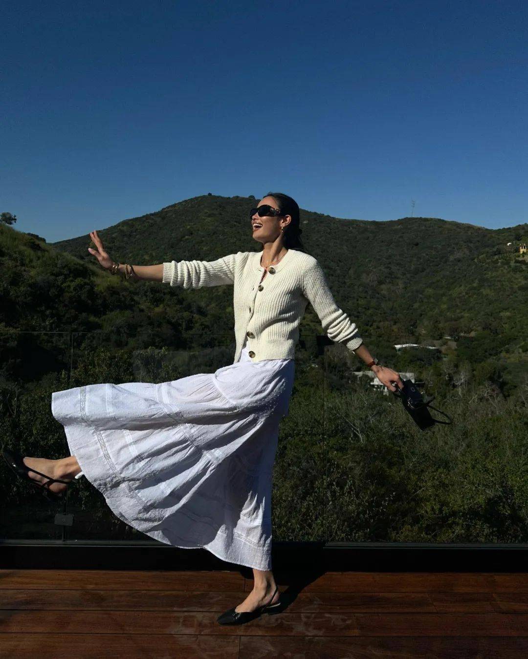 大大的裙摆就应该散开来呀,这个拍照姿势旅游的时候可以学起来,好有活力