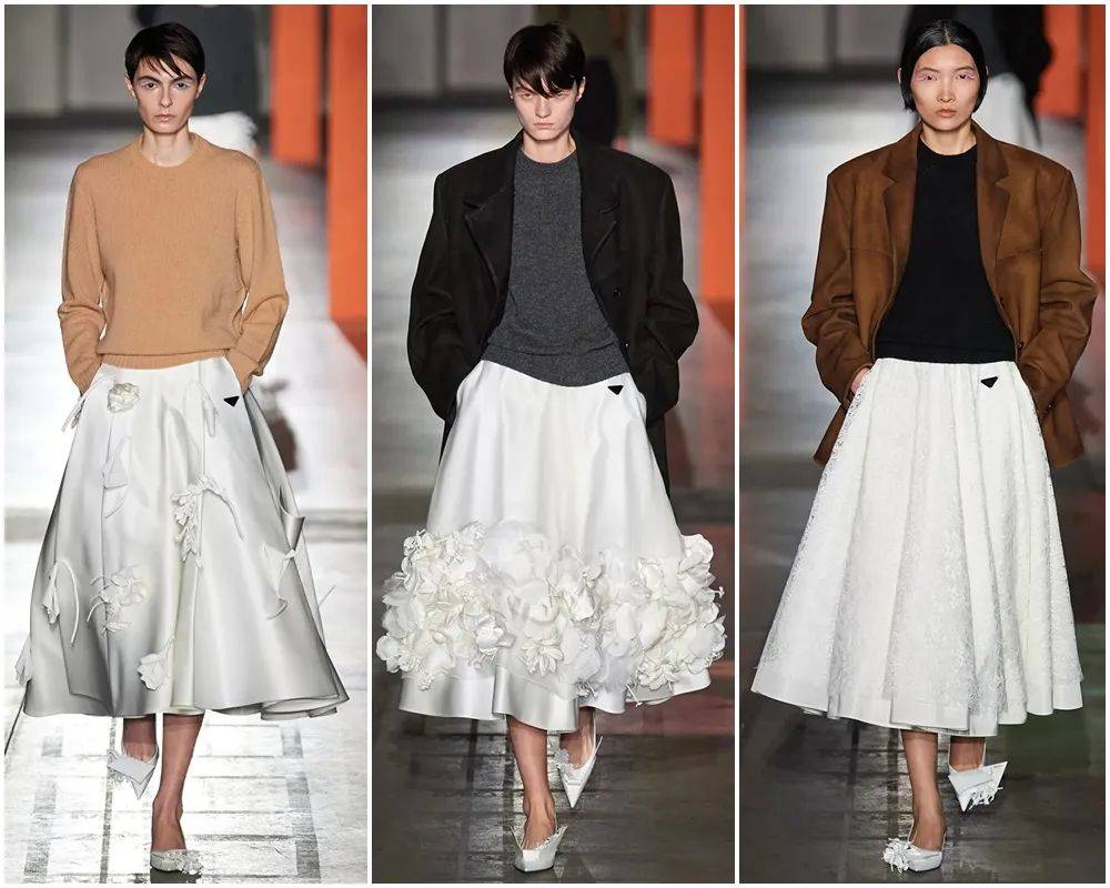还记得Prada 23秋冬系列的白色伞裙吗?当时我和身边好多小伙伴都种草得不行,但也有些朋友担心这种大裙摆穿上会太隆重,能穿的场合不多。