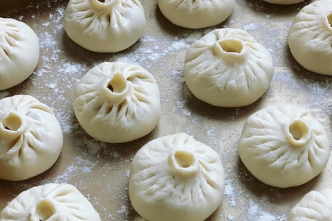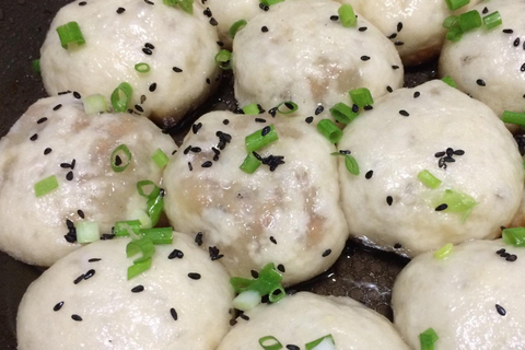5.把馅料包在饺子皮中,捏成包子状,放置一旁备用。 6.准备一个不粘锅,在不粘锅的表面刷上一层花生油,把包好的包子放在锅中。 7.开小火,开始煎制,直至包子表面呈焦黄状,准备适量清水,倒入锅中,盖上锅盖,调至中火,开始焖煮。 8.锅中的水分收好之后,撒上适量葱花和芝麻,这样美味的生煎包就制作完成了。
