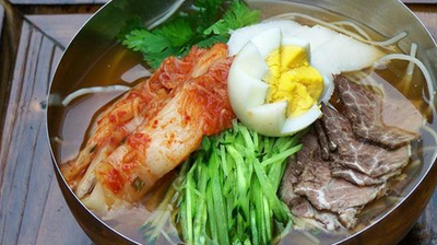 林延吉冷面是驰名国内外的一种深受人们喜欢的传统中国朝鲜族食品。主要原料有荞麦粉、小麦面和淀粉,也有用玉米面、高粱米面和士豆淀粉的。荞麦面上盖着牛肉、苹果、泡菜,上桌前从大桶中舀一勺冰凉酸甜的汤料,满满的一碗凉爽。这是延吉冷面留给很多人的印象,而似乎也只有这样做出的冷面才是最正宗。吉林延边地区以延吉冷面著称,所以称为延吉冷面。