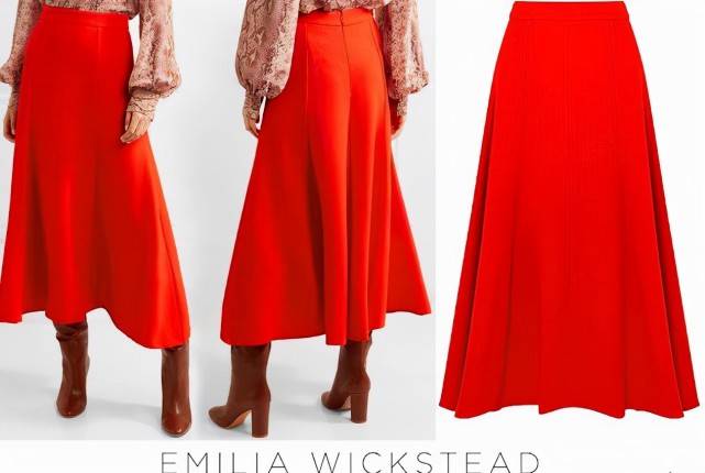 拉尼娅将衬衫下摆塞进裙腰中,纯色系的大红色半身裙明艳大方,分分钟削弱白衬衫的单调气息,更何况拉尼娅的这件白衬衫本身也不低调。