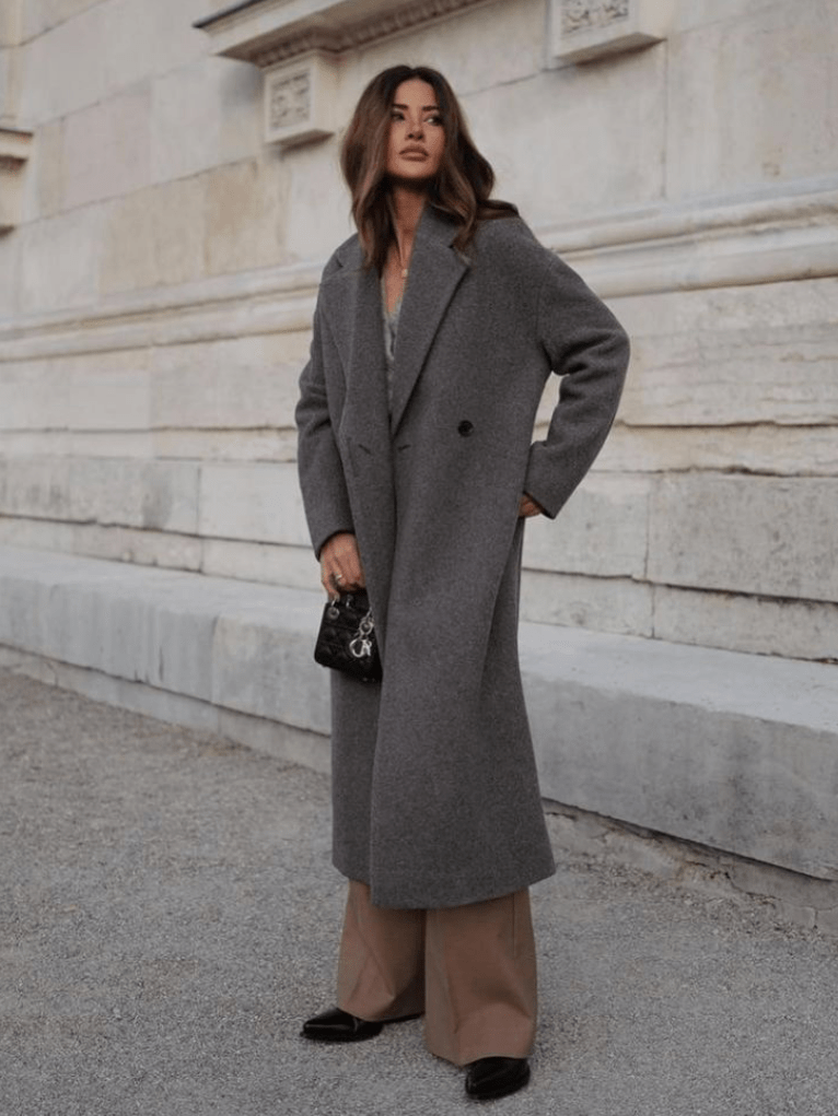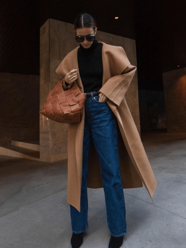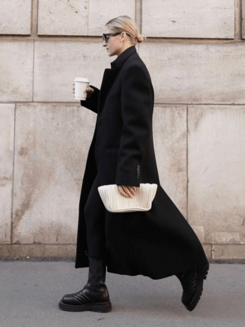 11.大衣越大,包包越小,体积的反差更能提升着装的精致度。大衣色系越简单,包包越需要有设计感和色彩度。