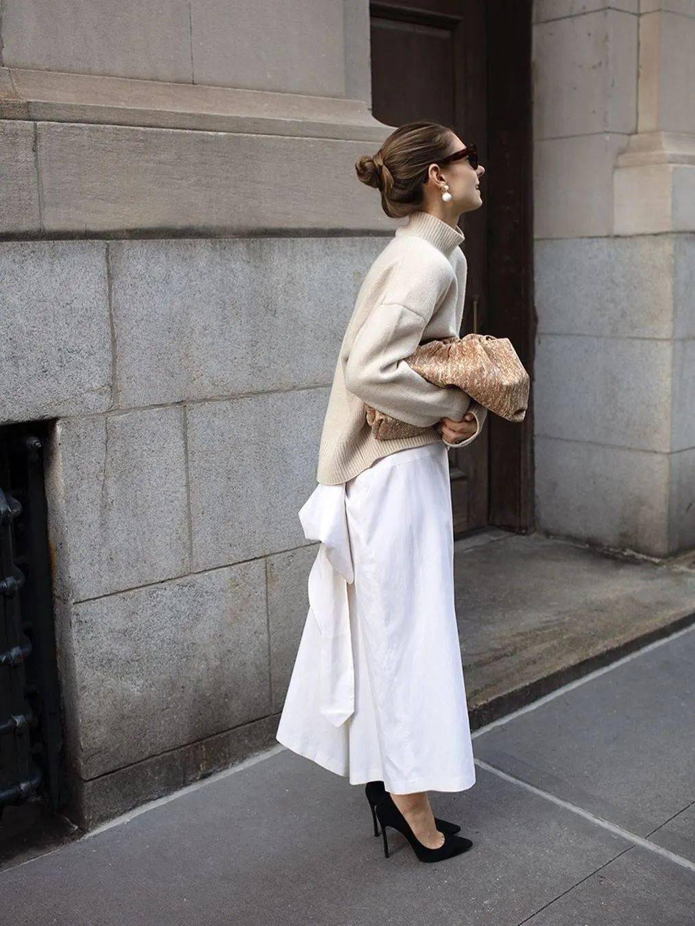 12.裙子质感越轻,鞋子越重,避免头重脚轻,尤其是冬天,轻重平衡的视觉观感看起来更符合季节需求。