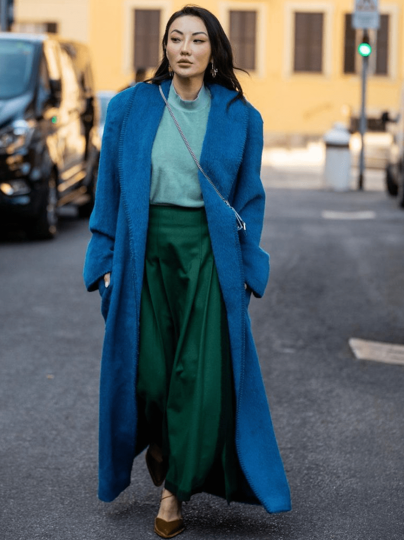 9.对比色搭配,大胆跳跃,冬天推荐选用一个颜色作为主色,另一个颜色小面积点缀实现。色彩亮度要一致,避免一种颜色压制另一种颜色,需要呈现完美的平衡感。