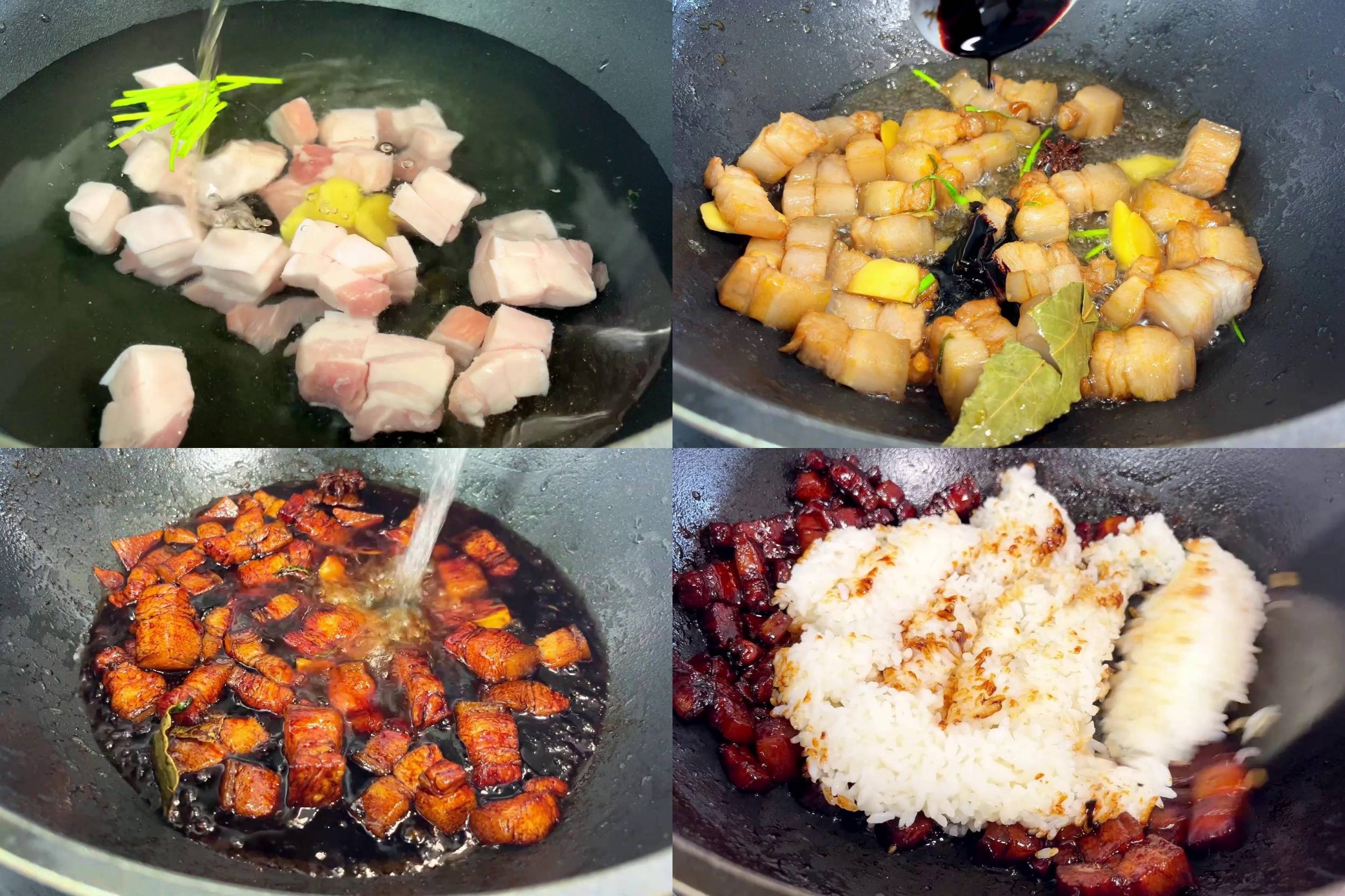 红烧肉可以说是米饭的最佳搭档,这个红烧肉拌饭,让每一粒大米都裹满了酱汁,红烧肉吃起来大满足,绝对够解馋。