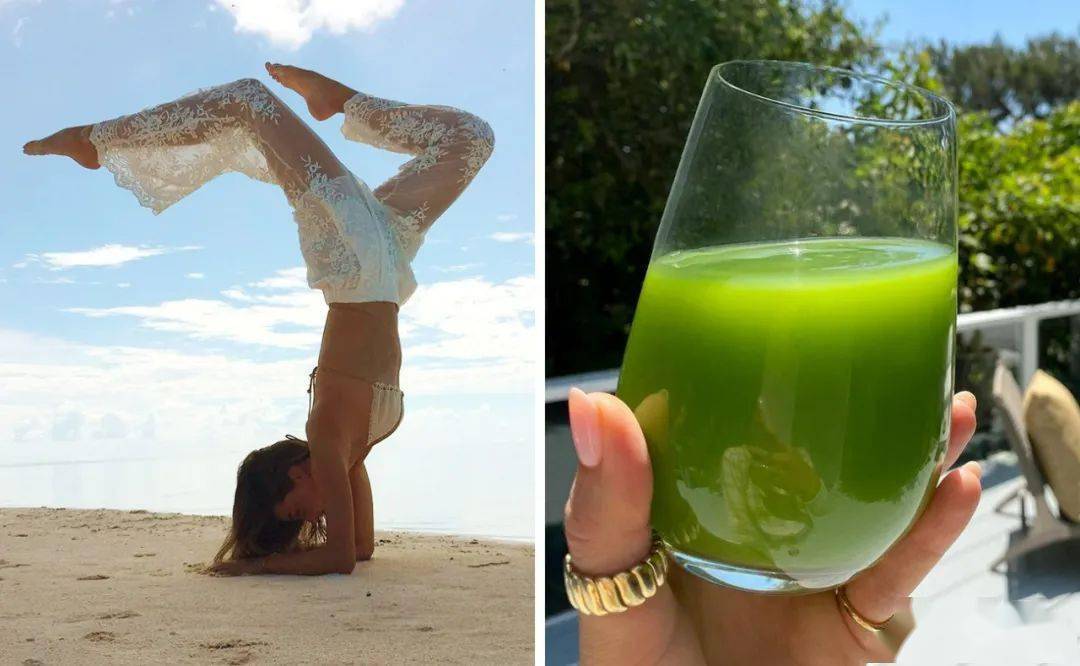 米兰达-可儿时常在 ins 上展示瑜伽和蔬果汁