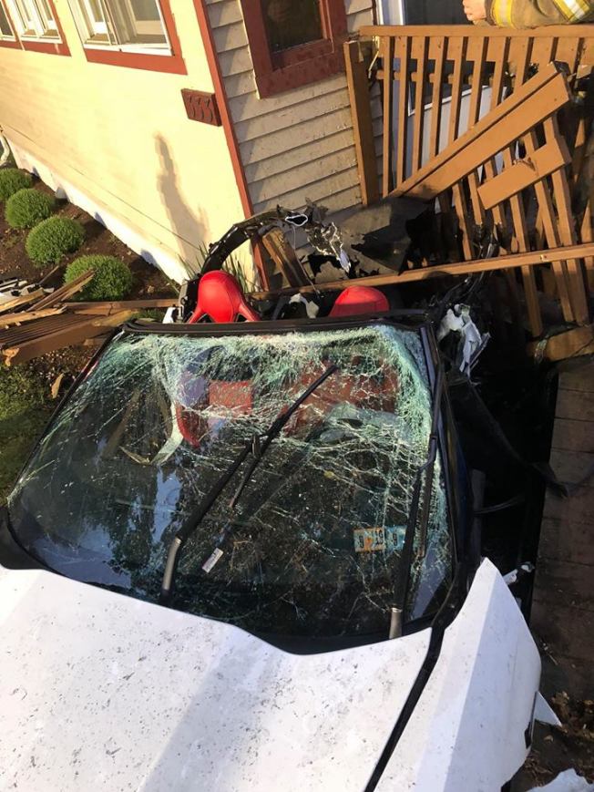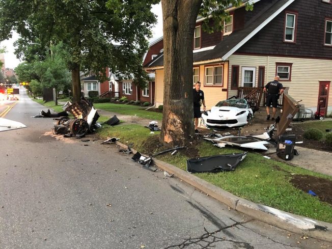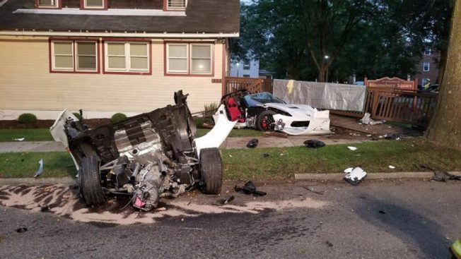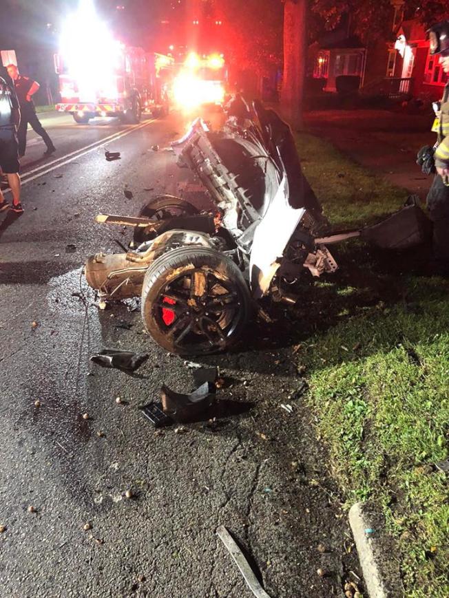 唐凯靖的雪佛兰Corvette因撞击力道过猛断成两半。(取自Alpha Fire Company脸书)