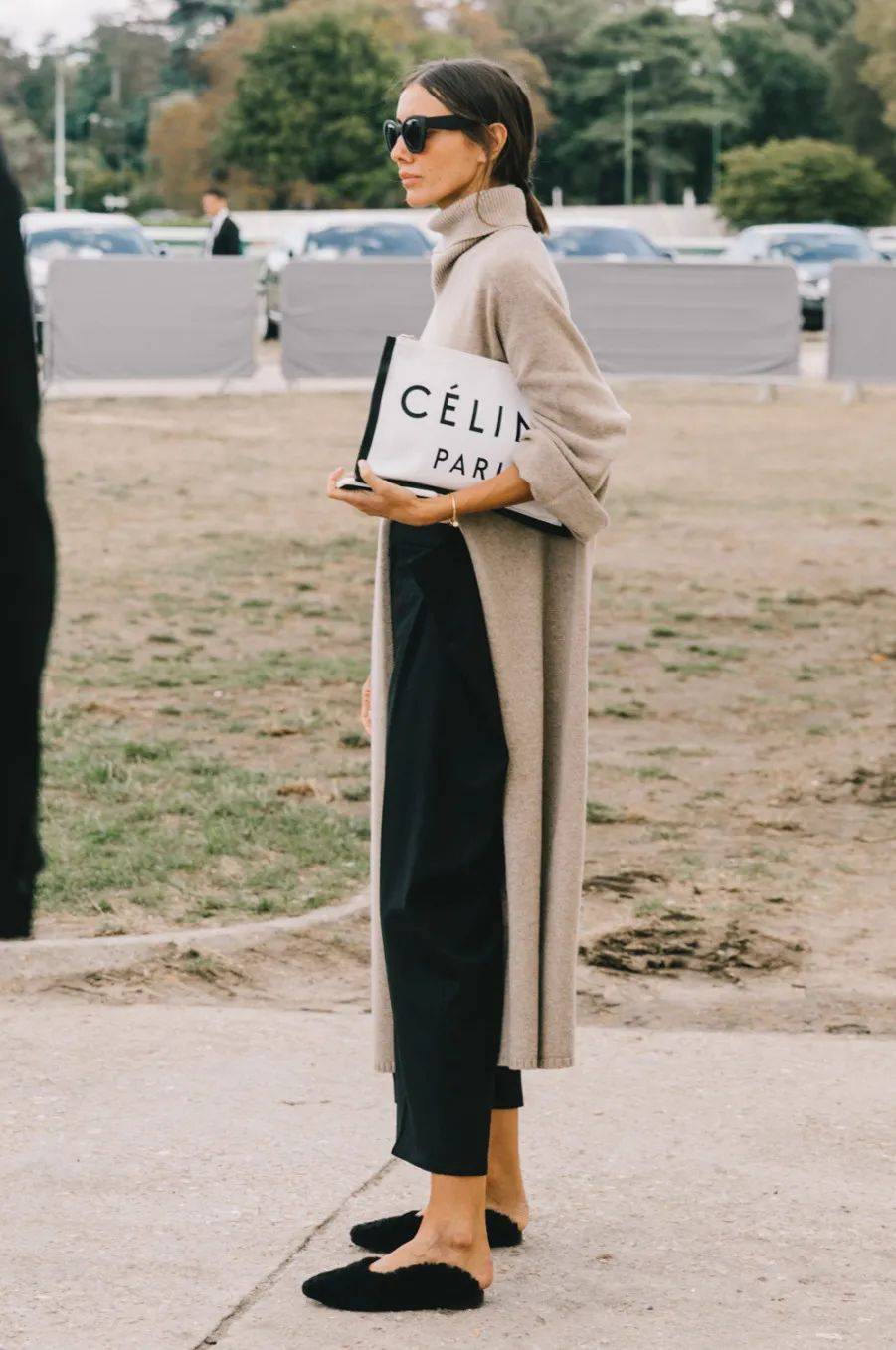 今年的针织裙一改往年“包裹严实”的特点,领口变得越来越时髦,比如这条经典曼妙的挤奶领黑色针织裙,脸型、肩颈、锁骨无一处不在散发魅力,我称为它为秋冬最佳小黑裙。