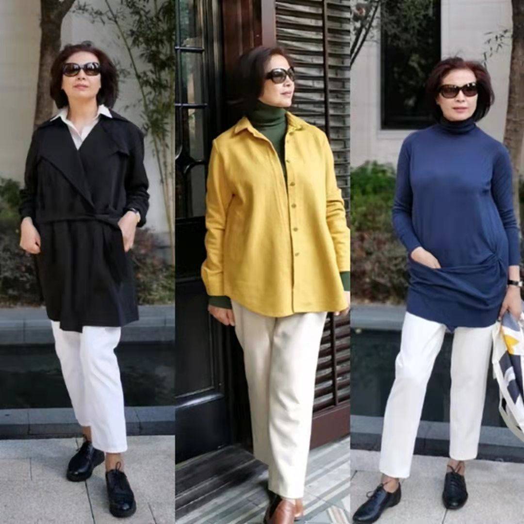不过九分裤颜色众多,60岁女人穿衣走稳重优雅路线,在颜色上,推荐优先考虑一些低调耐看又高级的基础色或者大地色系,配合纯色款式,既实用百搭,又符合60岁女人自身所拥有的成熟气韵,如黑白灰、咖色、卡其色或者棕色。