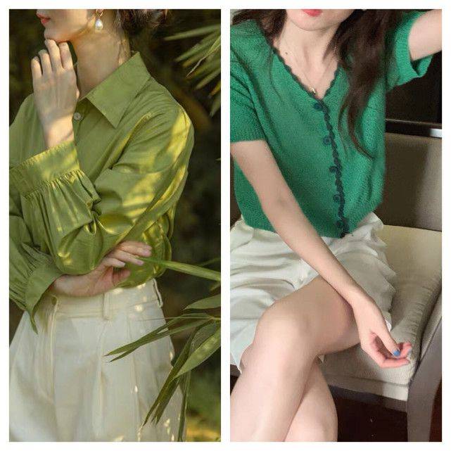 而大面积的使用对黄皮女孩也并不友好,一不小心就踩了雷。所以绿色搭配的时候,我们要尽可能地避免全身绿色,特别是同一个色度的绿色。
