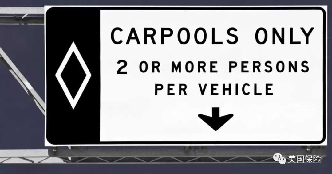3)标有HOV或者Carpool的车道是必须车里有两人以上的乘客(包括司机在内)才可以使用的,HOV或者Carpool的车道一般在路的最左边车道。只有一个人开车驶入这种车道会被罚款, 洛杉矶 的规定是至少罚341美金。