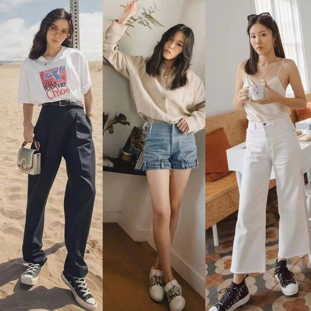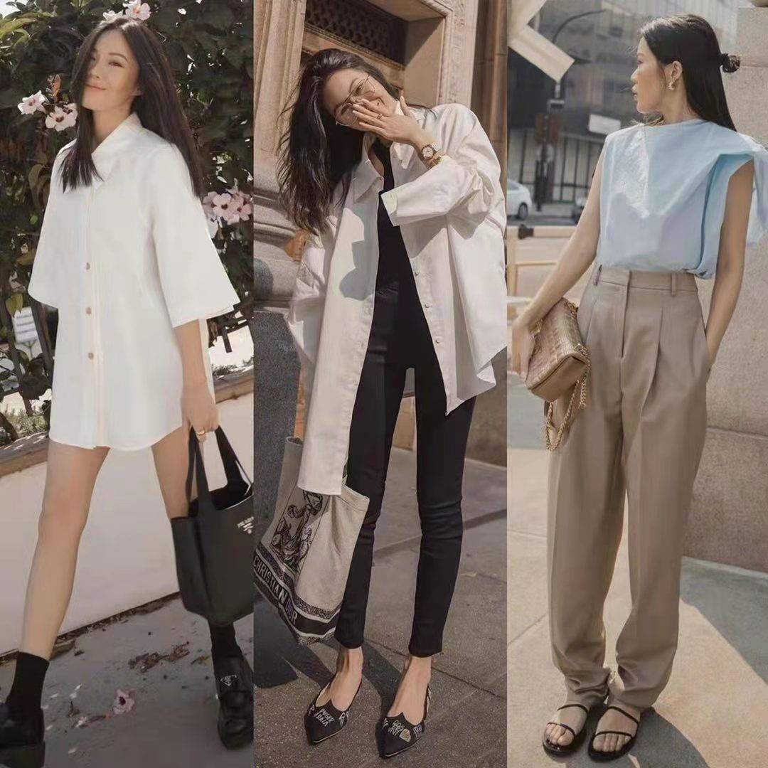 除了简单的T恤之外,就是比较受欢迎的衬衫。衬衫的款式也多种多样,中长款式的白色衬衫搭配起来是最容易搭配的,能够展现出一种又纯又性感的风格。