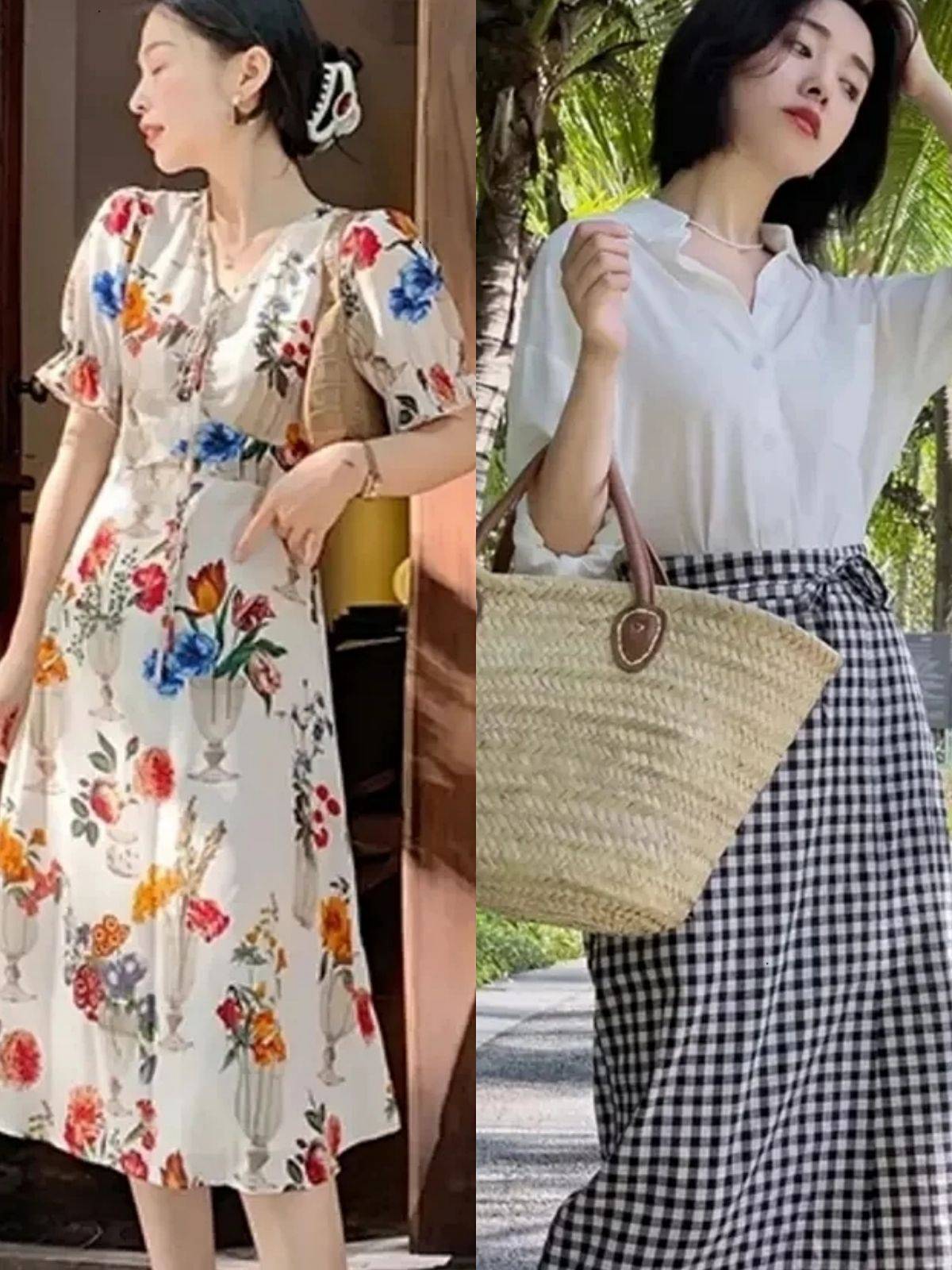 在炎热夏季,各种印花、碎花、波点或者格纹单品,堪称中年女人用来打造年轻感的利器。