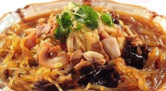 4.加入1勺生抽、1勺老抽、1勺蚝油、少许白糖、少许食盐,搅拌均匀,煮沸后加入粉条,煮软后,加入1勺陈醋、淋入适量水淀粉、煮至粘稠即可出锅