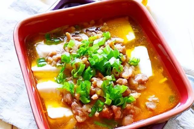 喜欢吃辣的人,在勾芡的时候要多加点汤汁,这样豆腐在汤汁里的味道会更好。