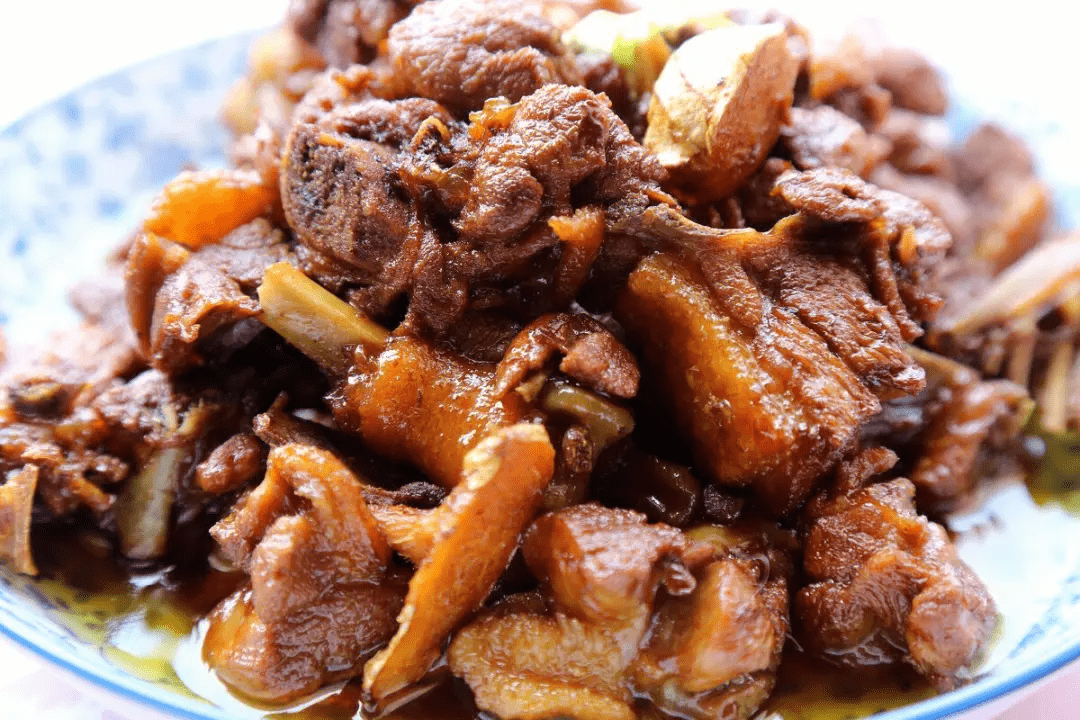 准备食材:鸭、姜 做法步骤: 1、鸭肉洗净斩块,冷水下锅,放几片姜片和料酒,把鸭肉焯水,捞出洗净,沥干水分。 2、起锅热油,放入姜片炒香,加入焯好水的鸭肉翻炒出鸭油,加入生抽、老抽、冰糖、蚝油,翻炒均匀,加入没过食材的开水,大火烧开后转小火焖1个小时。 3、最后中大火收汁,即可出锅开吃。