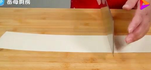 在案板上撒一些干粉,擀成均匀的圆形薄片,面片越薄。做出来越脆,然后切成长方形的小面片。在小面片中间划几刀。薄脆胚子就做好了。