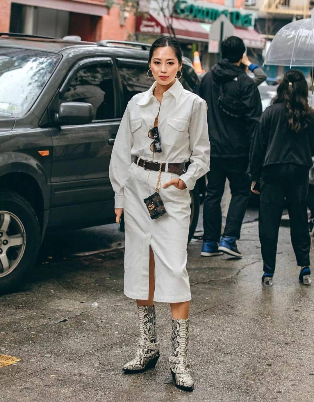 几乎一夜之间,所有时装精都开始穿起了裙子+中筒靴,成了时尚圈最炙手可热的搭配。