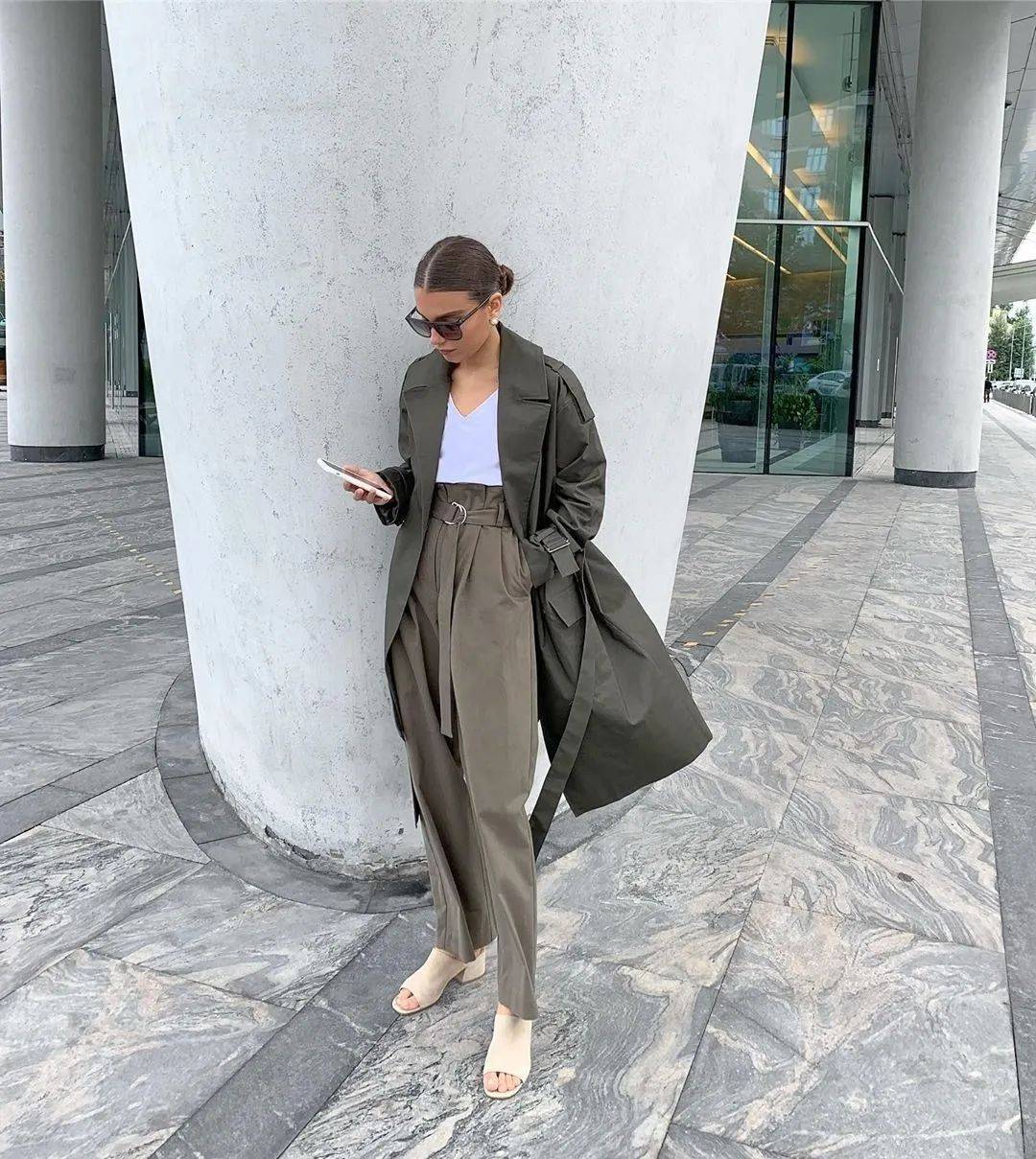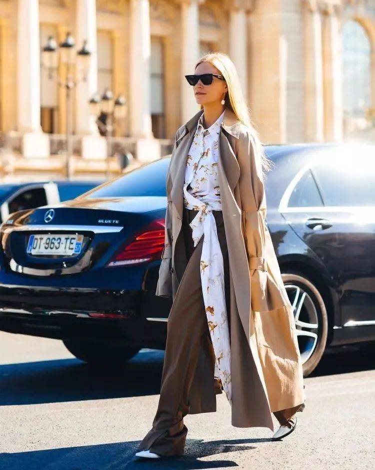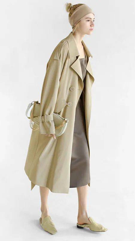 想要显得更高,可以在风衣的里面穿一条同色系裤子和裙子,一气呵成的流畅感,想不显高显瘦都难。是一件可以穿很多年,非常值得投资的风衣。