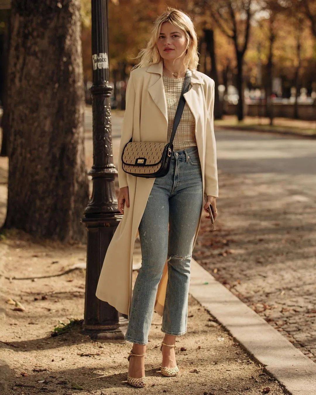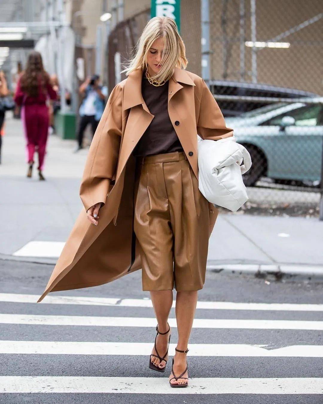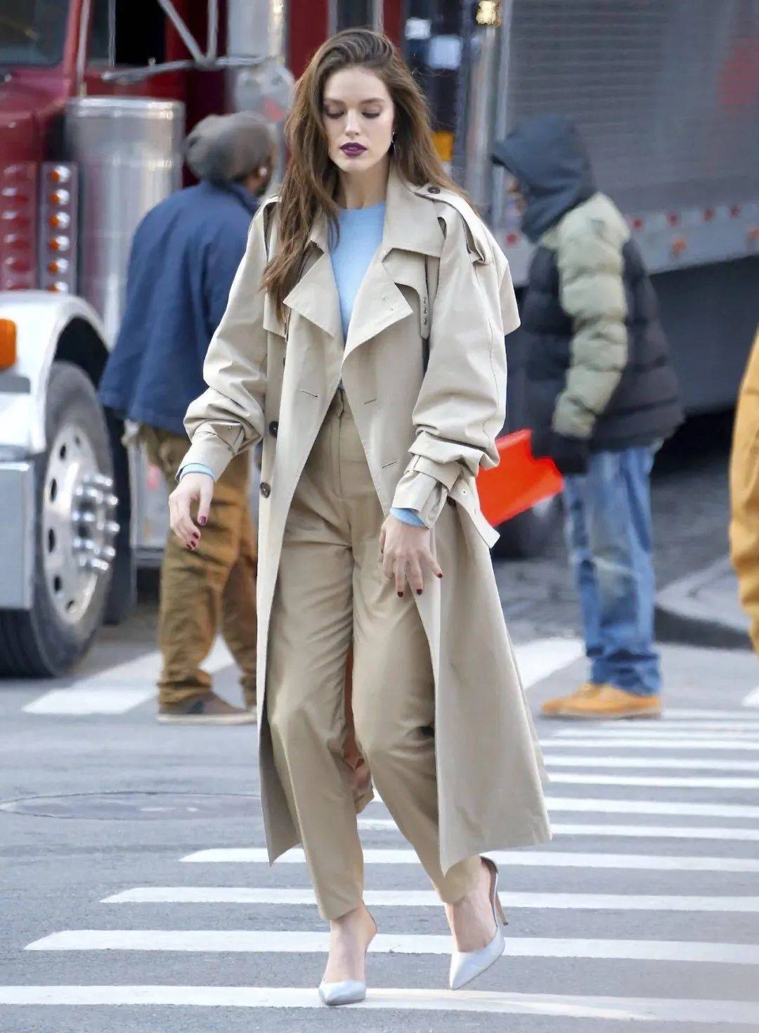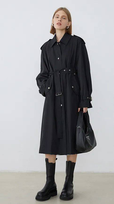 比起截身材比例的及膝款,位于小腿肚中间以下,不仅不会截断比例,还能体现风衣的洒脱气质。