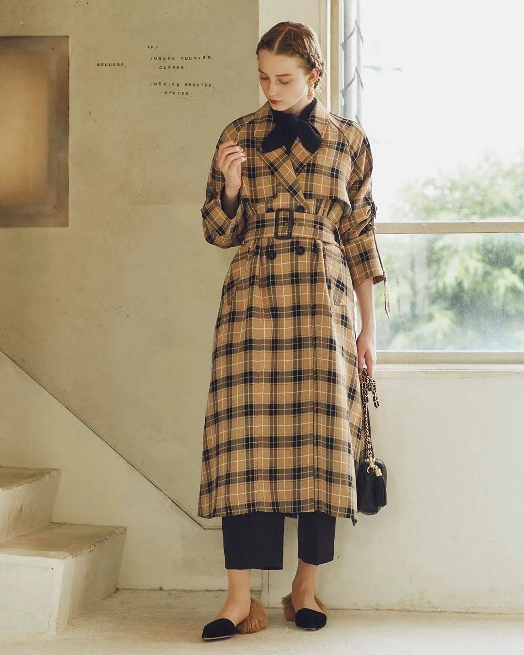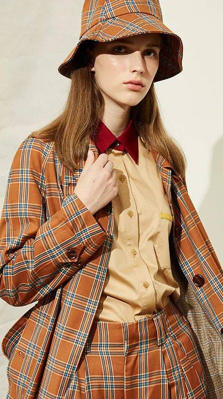 格纹元素在时尚舞台上经久不衰,在基础上的风衣款式上,添上或大或小、或细密或稀疏的格纹图案,整件风衣就变得不一样了。
