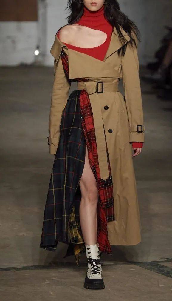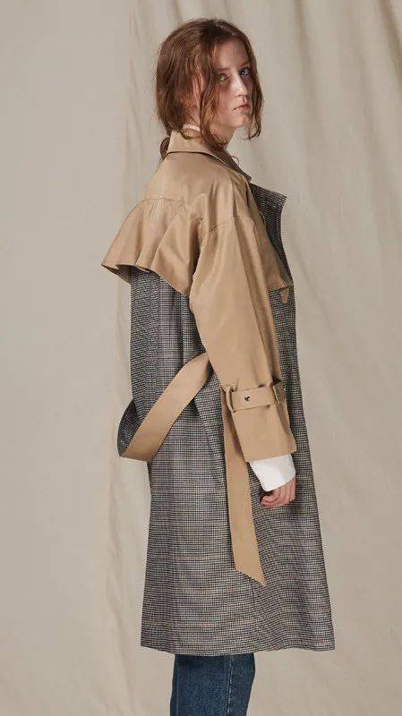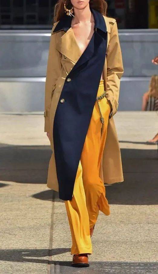 设计师们改变了风衣的简洁流畅结构,把色彩或面料重新拼接组合,多层叠加的方式让风衣多了更多时髦细节。