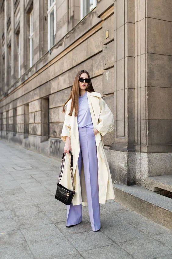 风衣算是一件one piece,所以运用大面积的彩色时会很惊艳。饱和度高的亮色系吸睛抢眼,浅淡色粉彩色系柔和浪漫,在秋天身着一件彩色的风衣,不管是穿得人还是看得人,都十足养眼。
