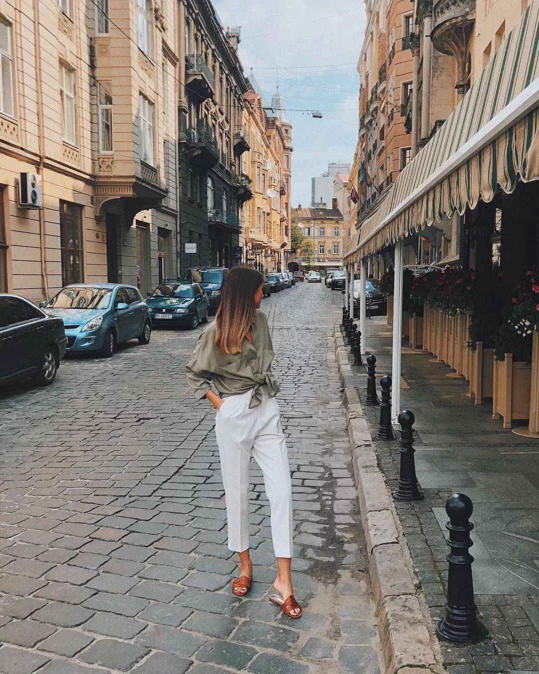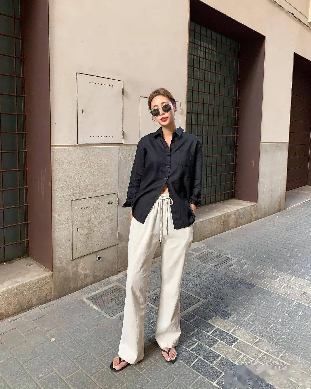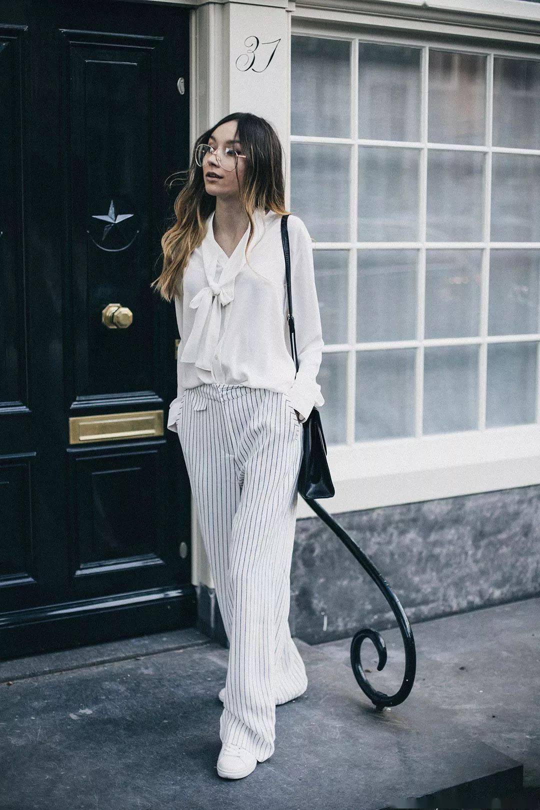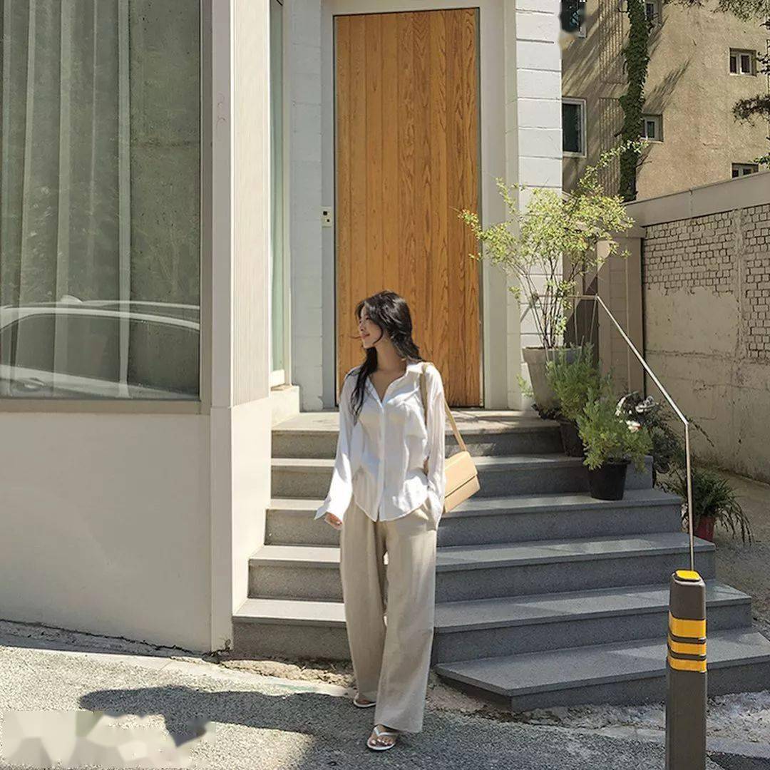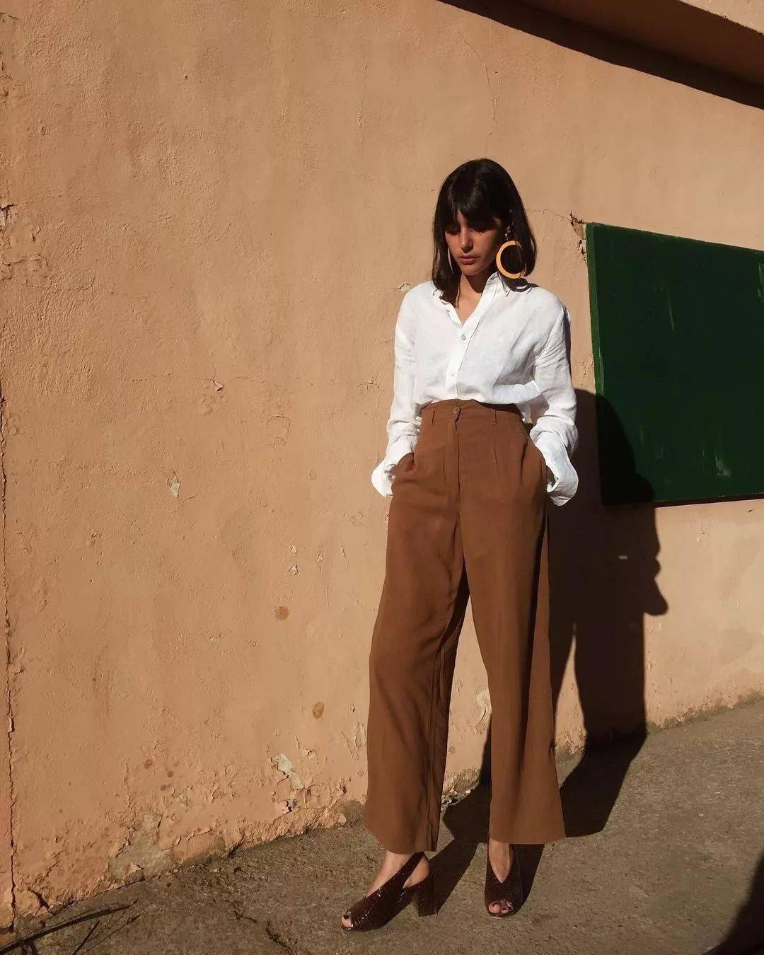 衬衫+奶奶裤的组合极简却极美,能营造出一种慵懒随性的风格,不菲声色的时髦往往是耐看迷人的。