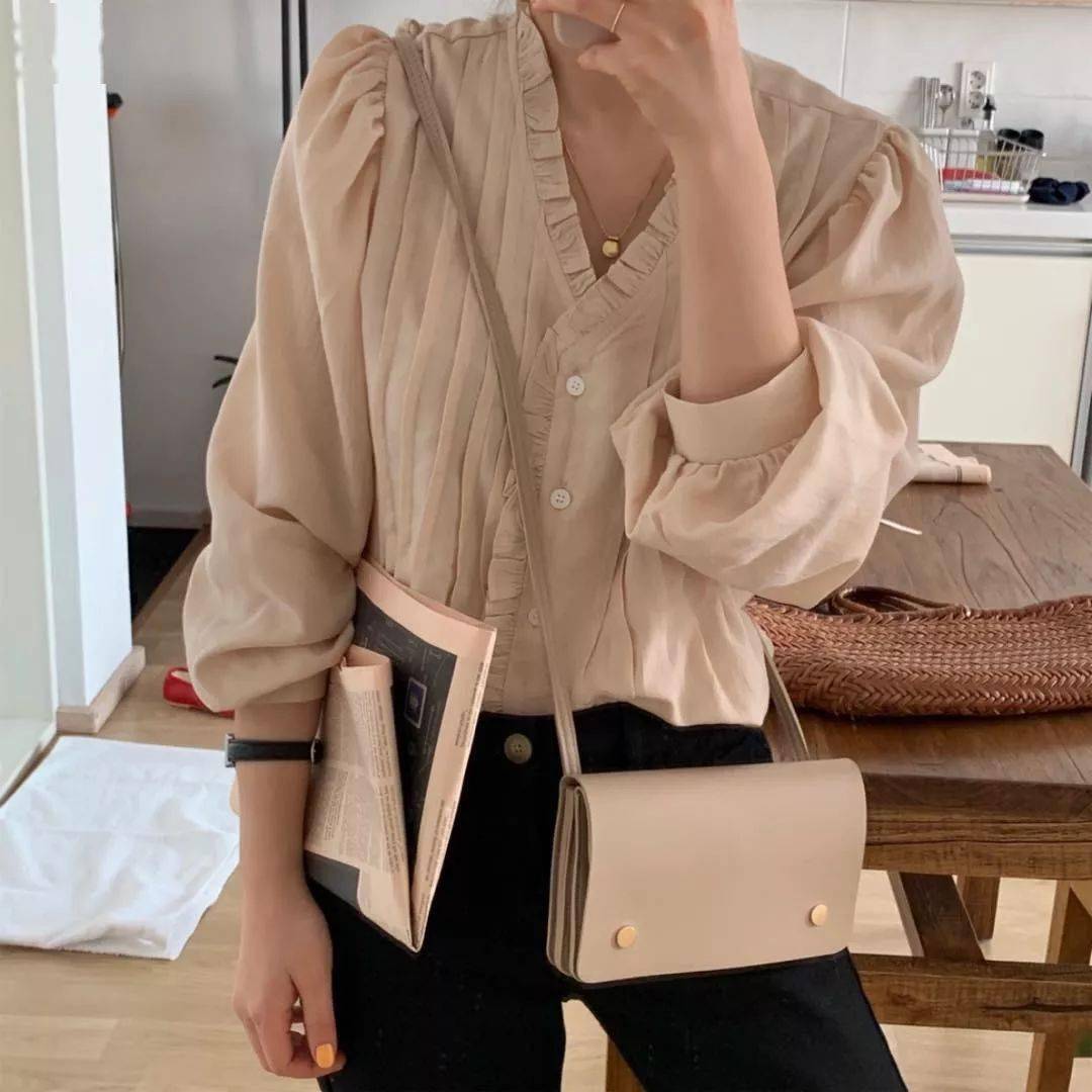 荷叶边衬衫柔美文雅又很是浪漫,秋天用它搭配奶奶裤可真是好看炸了!