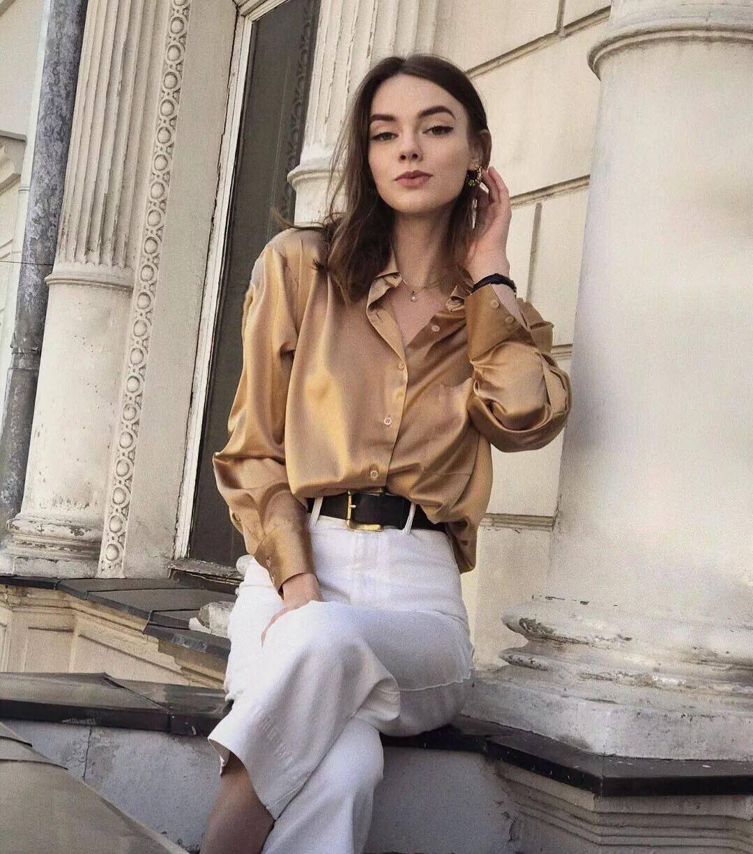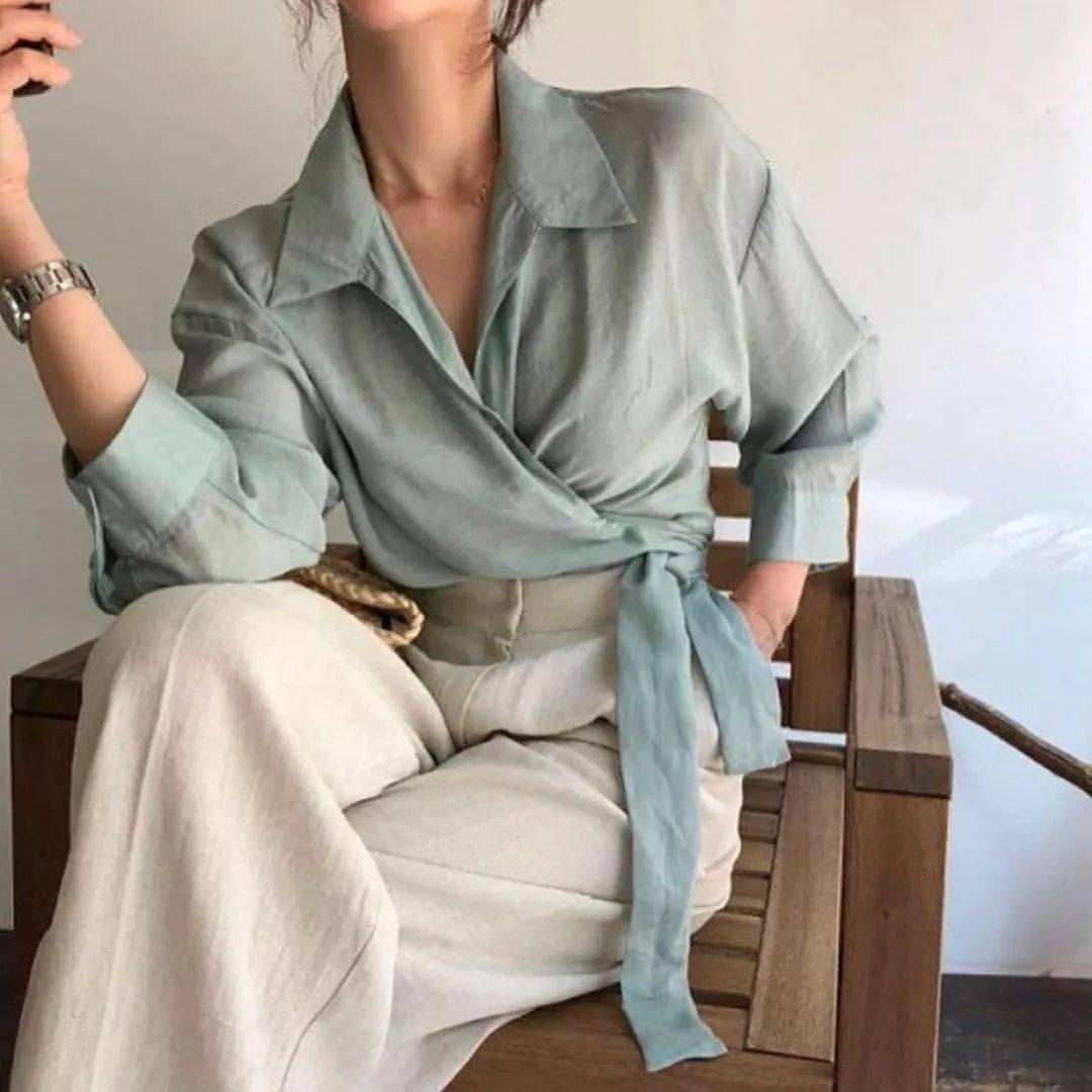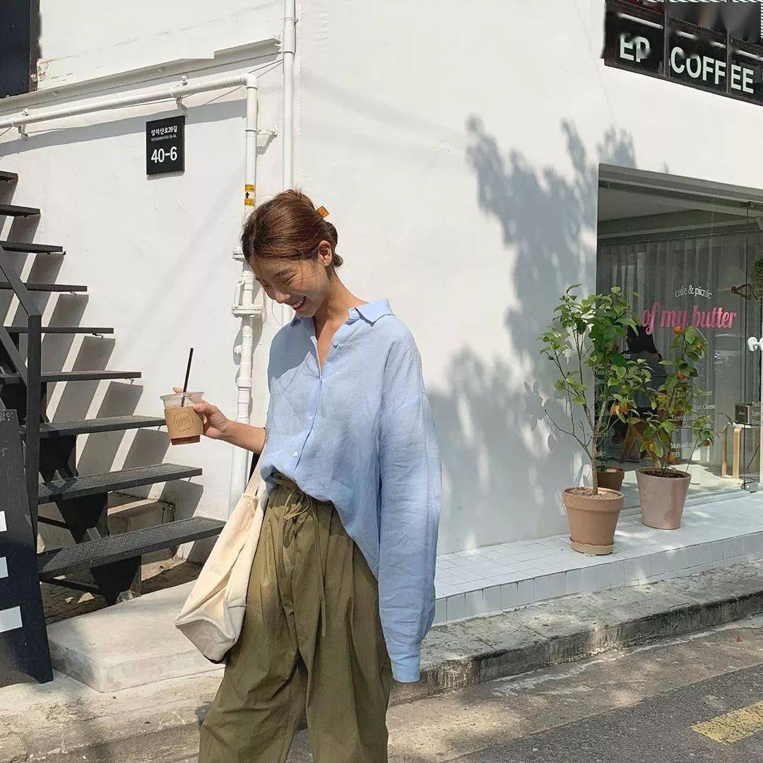 彩色衬衫也可以穿出高级感,选择清浅温柔的莫兰迪色系,或者是缎面亚麻面料,就可以美貌与气质兼具。