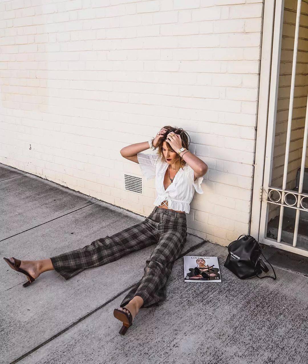 喜欢文艺清新风格的仙女,可以用格纹衬衫来与奶奶裤组CP,复古腔调十足。