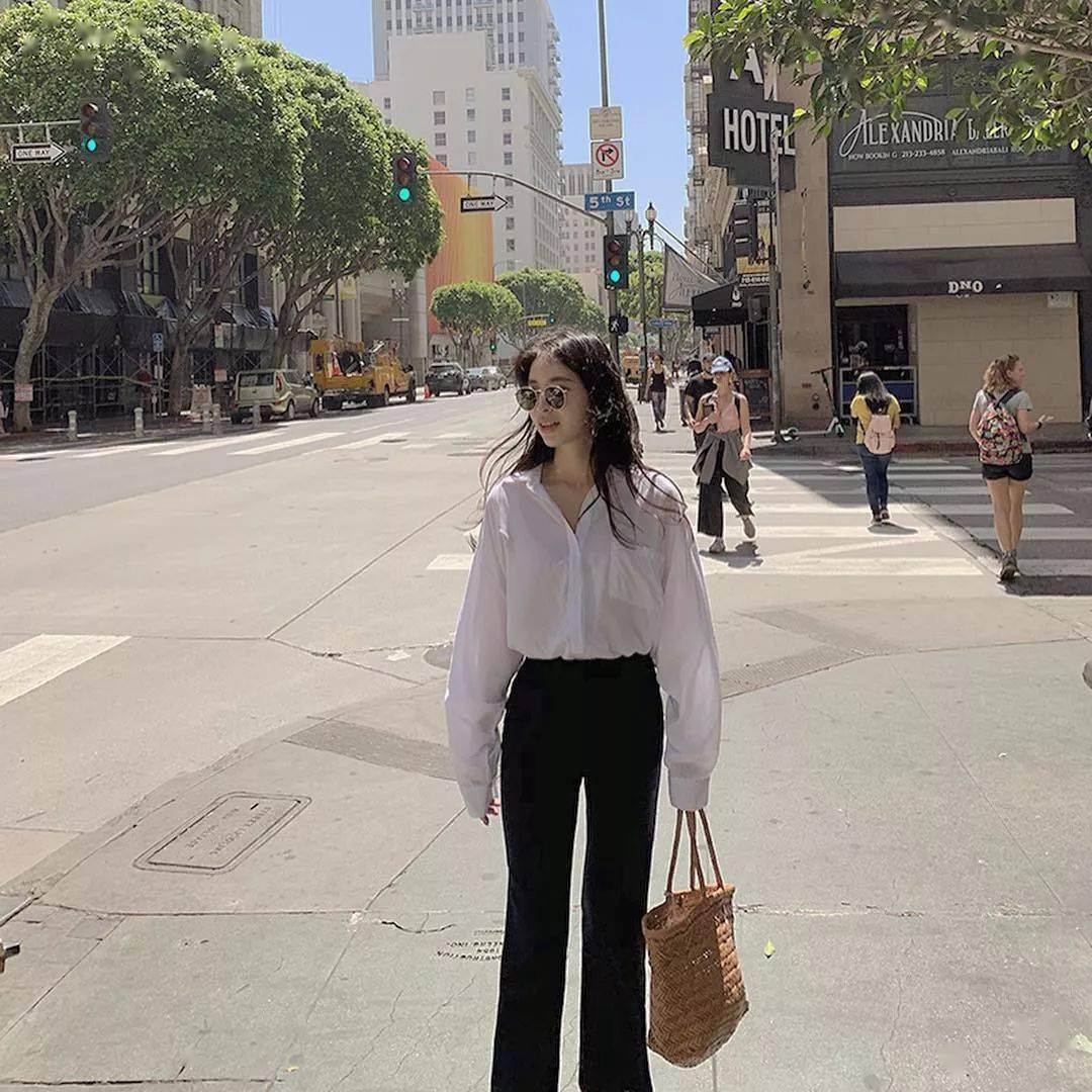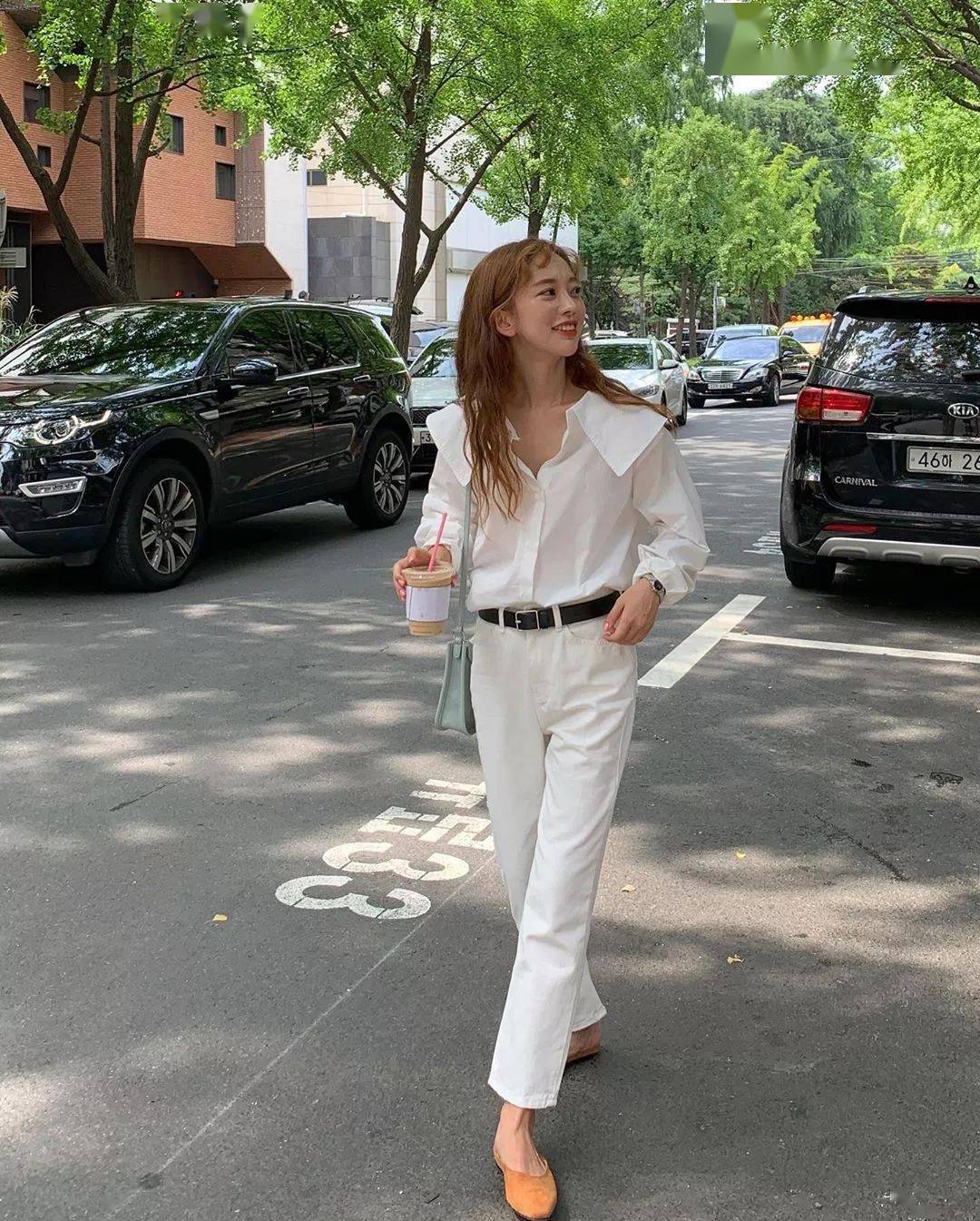 将白衬衫的下摆塞进裤腰里,干练利落穿上秒变气质,上班这样穿亦能气质与气场并存。