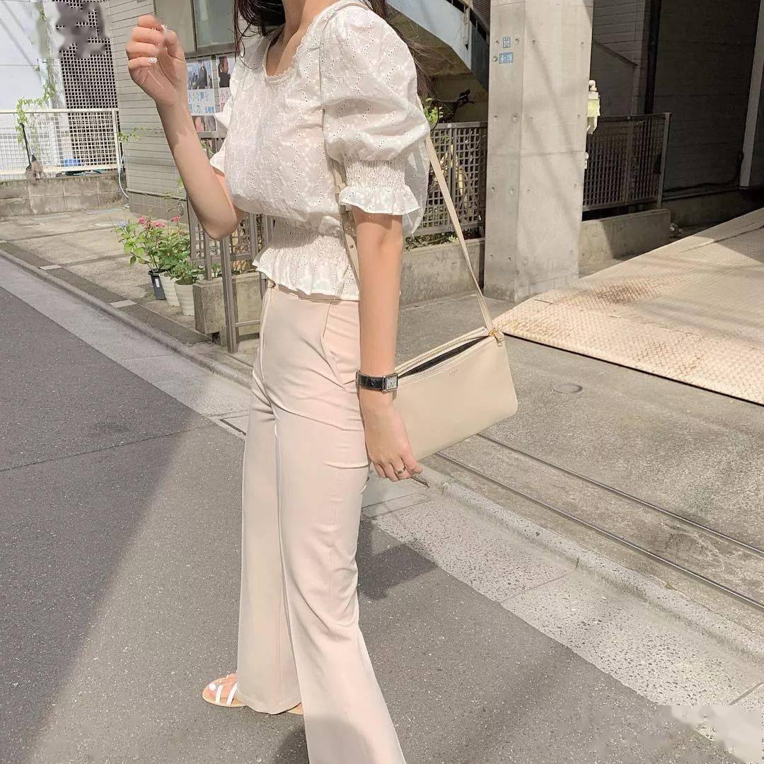 泡泡袖衬衫可以营造出一种复古甜美感,让你的奶奶裤look亦可以显得少女感十足。