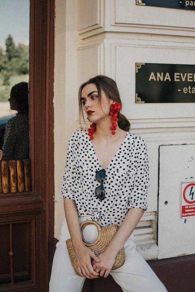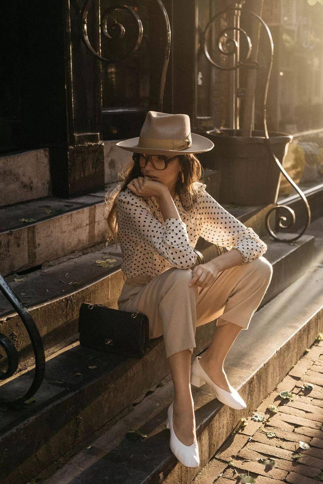 而用波点衬衫+奶奶裤,则更能营造出法式轻复古风,浪漫又随性。