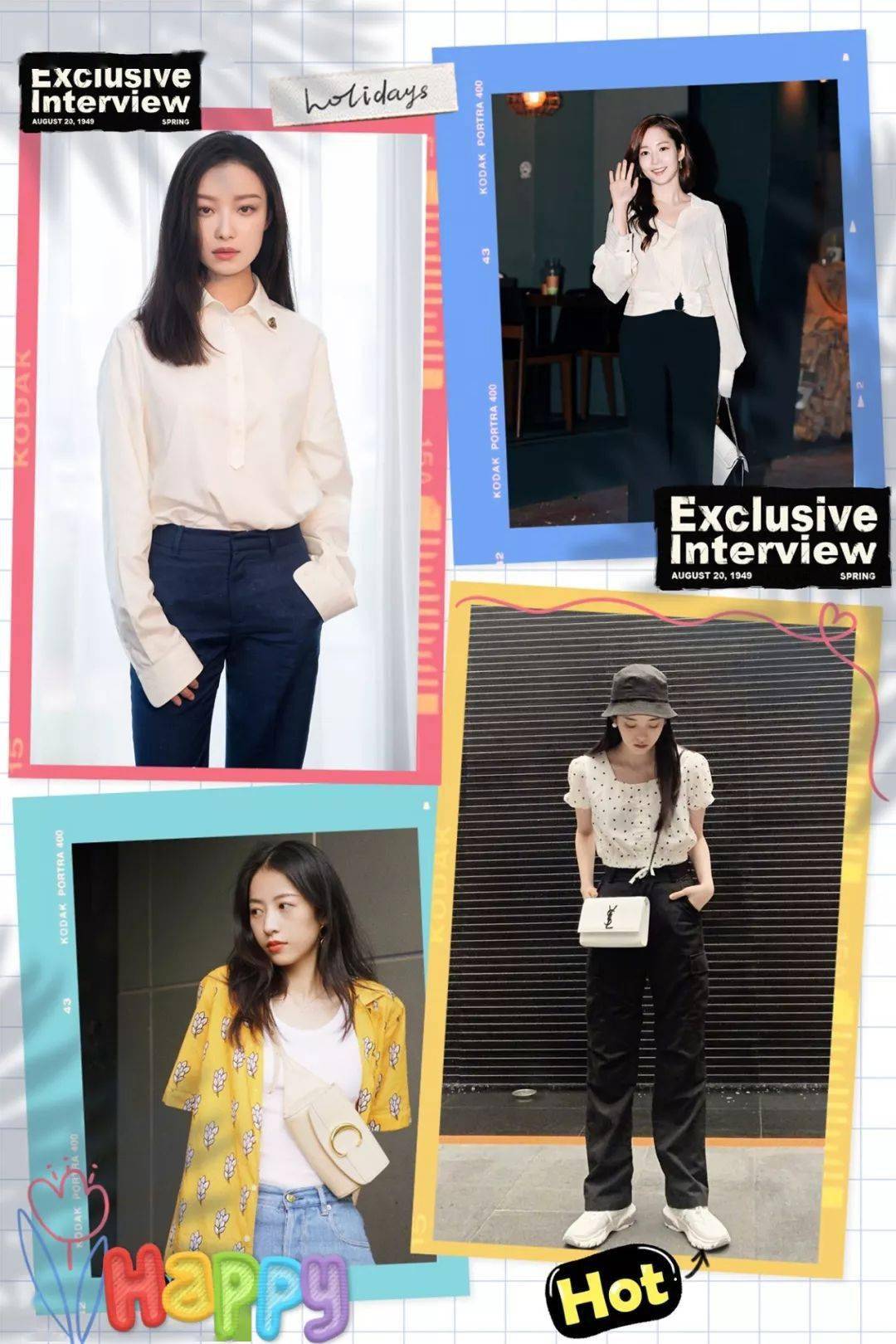 复古风回潮,复古印花的老爹衬衫也成为了炙手可热的香饽饽。像私服穿搭颇受好评的周雨彤就是一枚衬衫+奶奶裤的真爱粉——