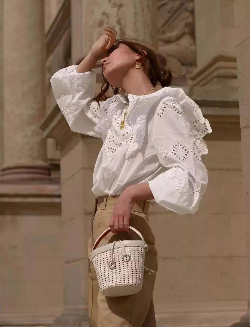 法式宫廷风衬衫古典浪漫又很有设计感,只需搭配一条超简单的白色奶奶裤,就足以让你成为人群中极特别的存在。