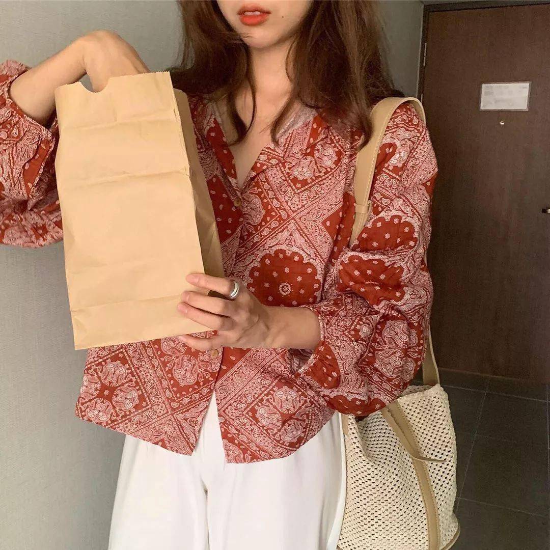 印花衬衫其实并没有我们想象中的那样难以驾驭,搭配基础色奶奶裤就可以很好看了。